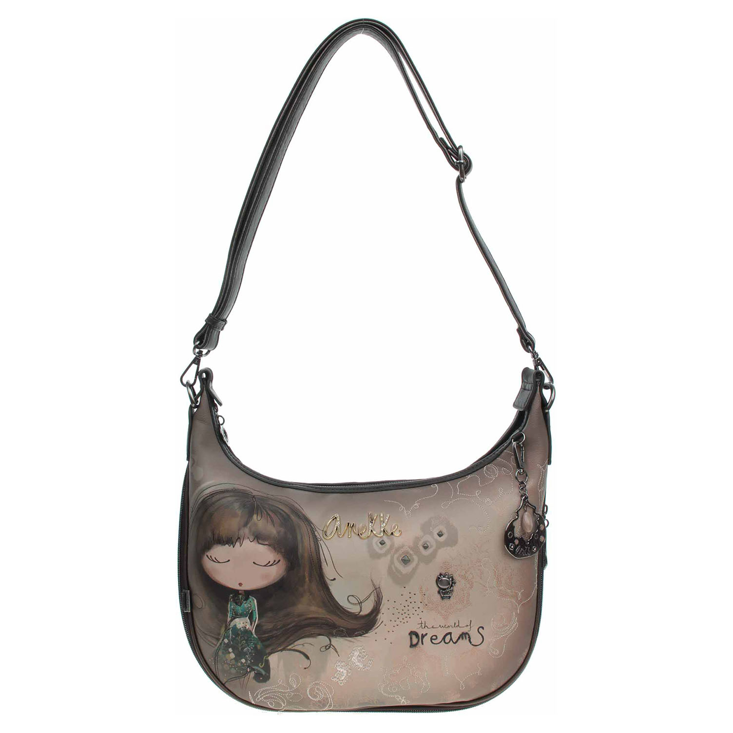 Anekke - dámská kabelka Real se zapínáním na zip má rozměry 25 x 37 x 11 cm a je vyrobená ze 100% polyuretanu s podšívkou ze 100% polyesteru. Na zadní straně je kapsa se zapínáním na zip. Kabelku je možno nosit jen v ruce za odepínatelné ucho (výška 26 cm) nebo přes rameno na regulovatelném popruhu s karabinkami (max 115 cm), který se dá odepnout. Formát A4 se nevejde. Vnitřní výbava: 1x kapsa se zipem, 1x kapsa bez zapínání. Nechybí ikonický přívěsek Anekke. Baleno v praktickém dustbagu. Anekke - I´m eco-friendly.
