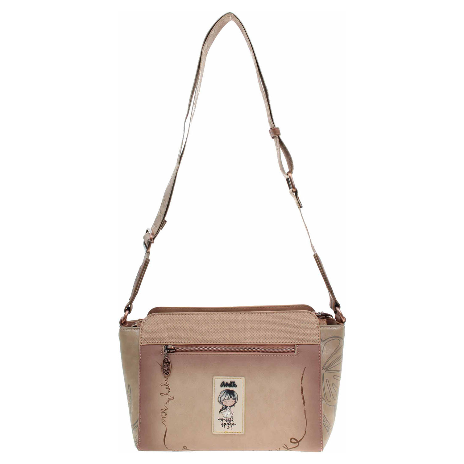 Anekke - dámská crossbody kabelka Stories se zapínáním na zip je vyrobená ze 100% z polyuretanu a podšívka je ze 100% polyesteru. Na přední i na zadní straně je kapsa se zipem. Regulovatelný popruh (max délka 140 cm) se nedá odepnout. Formát A4 se nevejde. Rozměry: 28 x 20 x 8 cm. Vnitřní výbava: 1x kapsa se zipem + 1x kapsička bez zapínání. Nechybí ikonický přívěsek Anekke. Baleno v praktickém dustbagu. Anekke - I´m eco-friendly.