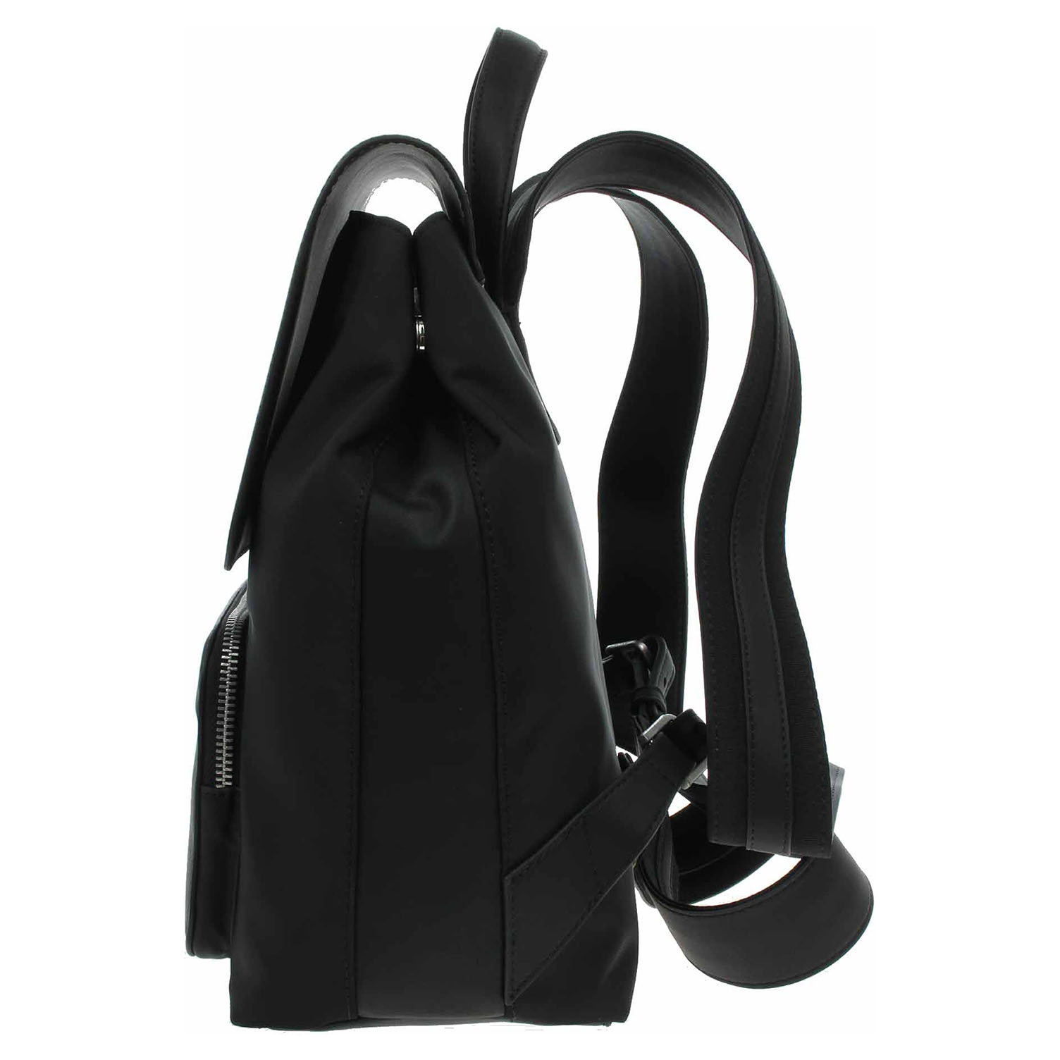 Calvin Klein - dámský textilní batoh s klopnou ze syntetiky (složení: 95% polyester / 5% polyuretan) má rozměry 30 x 26 x 13 cm. Podšívka je z 50% z recyklovaného polyesteru z plastových láhví. Batůžek, který se zapíná na magnet, je možno nosit v ruce za ucho nebo na zádech na regulovatelných popruzích, které se nedají odepnout. Na přední straně pod klopnou je kapsa se zipem. Vnitřní výbava: 1x kapsa bez zapínání.