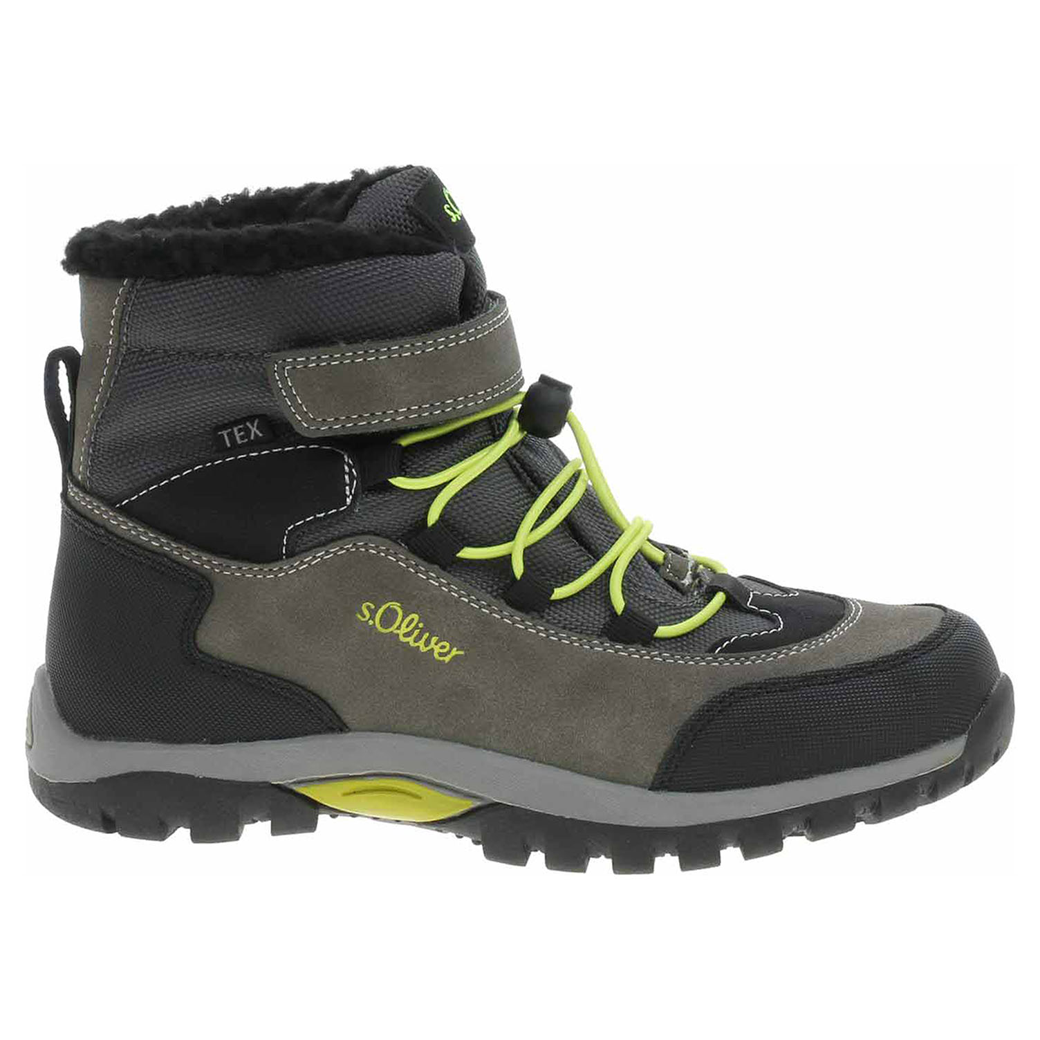 Boty s.Oliver - lepená chlapecká kotníková obuv se svrškem kombinovaným syntetika/textil a s textilní podšívkou s chlupem je vybavená vodoodpudivou Tex membránou a vyndavací stélkou Soft Foam, která se přizpůsobuje chodidlu a zajišťuje optimální komfort při chůzi. Vyměnitelné vložky do bot je možné vyndat za účelem provětrání a omytí. Značnou výhodu nabízejí vyměnitelné vložky do bot také těm uživatelům, kteří používají ortopedické vkládací stélky. Pohodlné nazouvání zajišťuje suchý zip přes kotník a gumička s brzdičkou na nártu. Lepená obuv - pevnost lepeného spoje může být negativně ovlivněna promáčením nebo propocením, event. opakovaným používáním nedostatečně vysušené obuvi. Při neopatrné chůzi může dojít k mechanickému uvolnění lepeného spoje - ukopnutí.