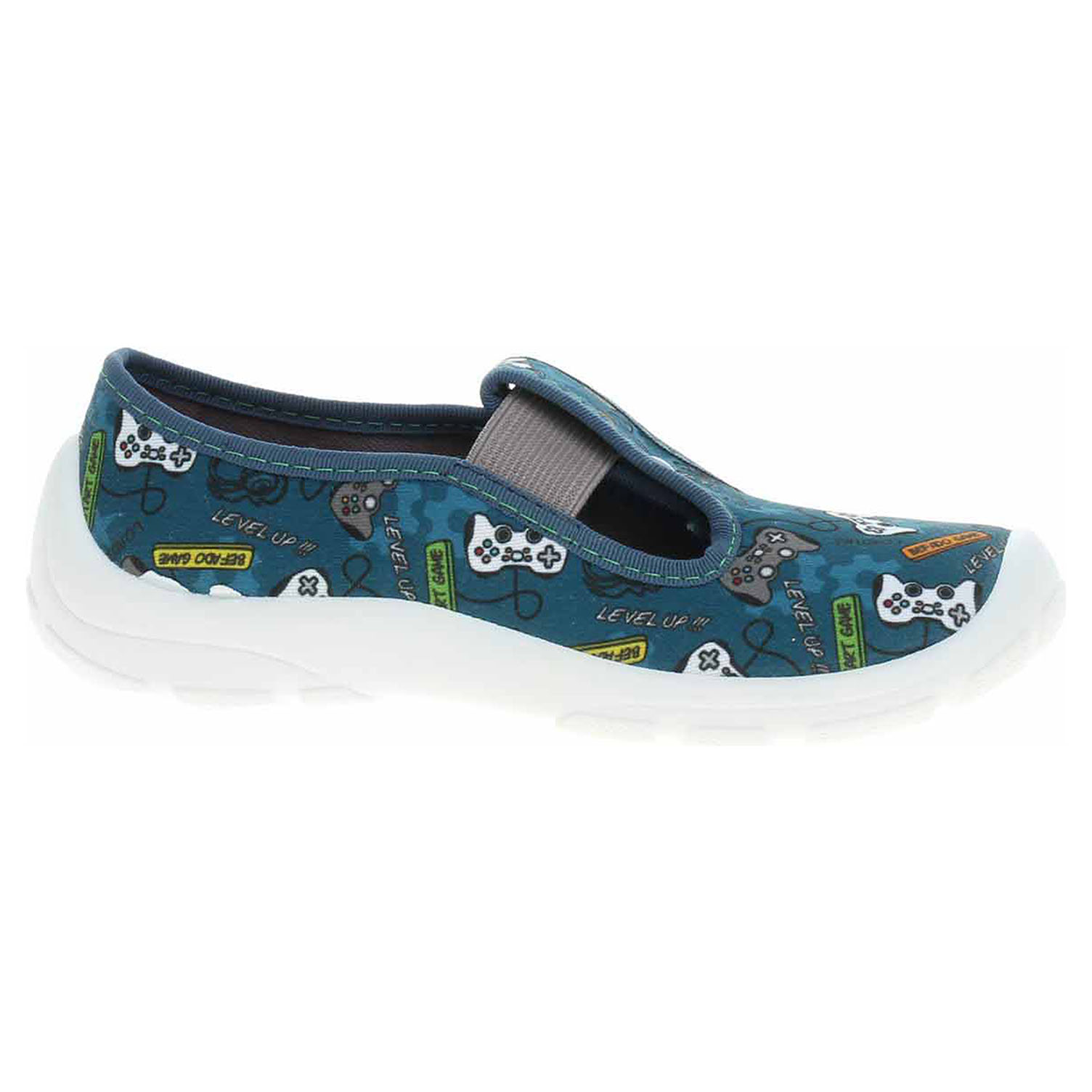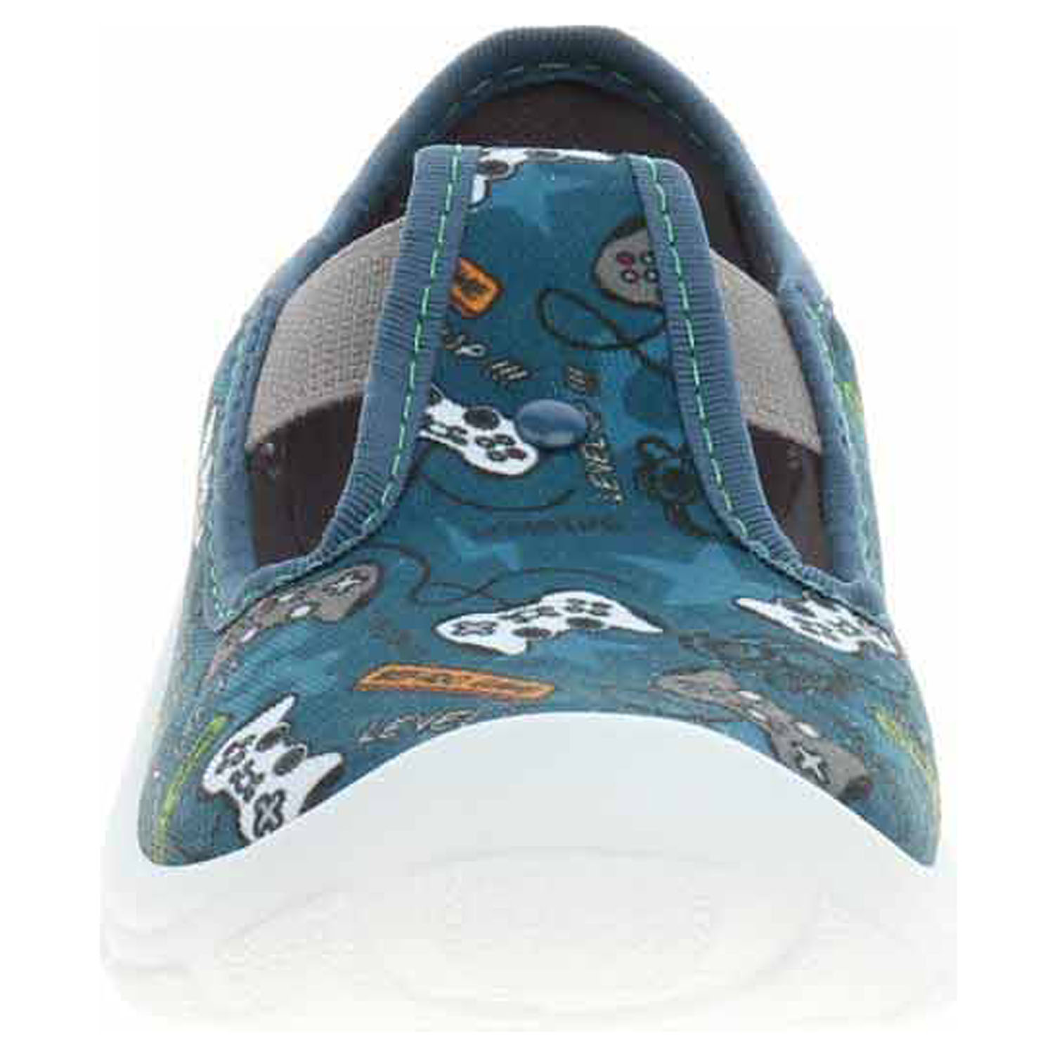 Boty Befado - chlapecké domácí bačkory s textilním svrškem, podšívkou i stélkou. Obuv je vybavená vyměkčenou stélkou Soft-B systém a dýchající podešví. Gumička přes nárt zajišťuje pohodlné nazouvání a stabilitu nohy v obuvi. Dětská obuv - je vzhledem ke způsobu užívání vystavena většímu mechanickému poškození - okopání. Mechanické poškození není důvodem k reklamaci.
