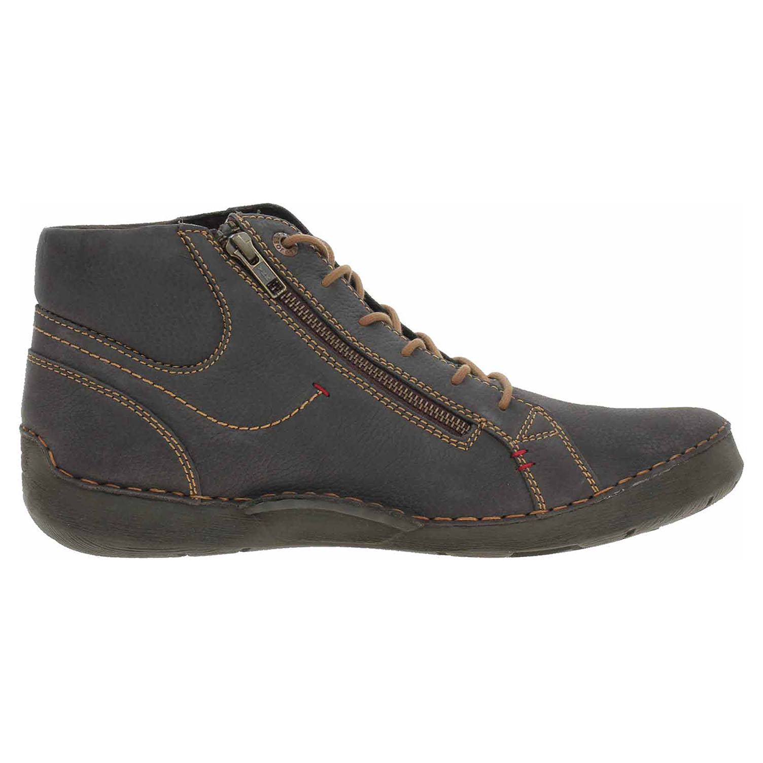 Boty Josef Seibel - flexiblová dámská kotníková obuv se šněrováním a zipem na vnější straně nártu má svršek z usně, textilní podšívku a vyndavací stélku s nášlapnou vrstvou z usně. Vyměnitelné vložky do bot je možné vyndat za účelem provětrání a omytí. Značnou výhodu nabízejí vyměnitelné vložky do bot také těm uživatelům, kteří používají ortopedické vkládací stélky. Klínek je vysoký 3,- cm. Flexiblová obuv - prošívaná podešev, obuv používejte v suchém prostředí. Při zvýšené vlhkosti může dojít k promáčení obuvi. Obuv pravidelně impregnujte nebo krémujte, zvláště pak prošívaný okraj.