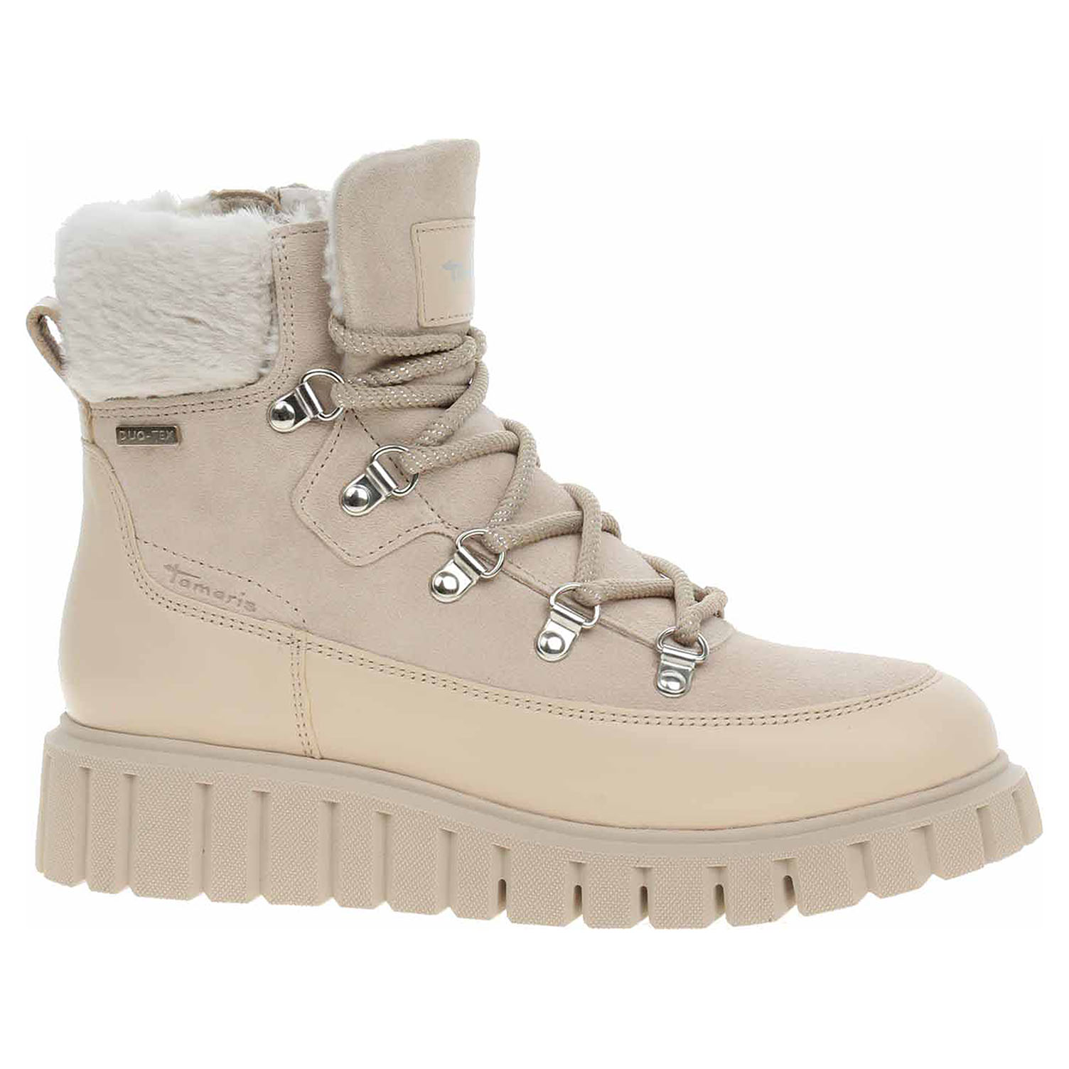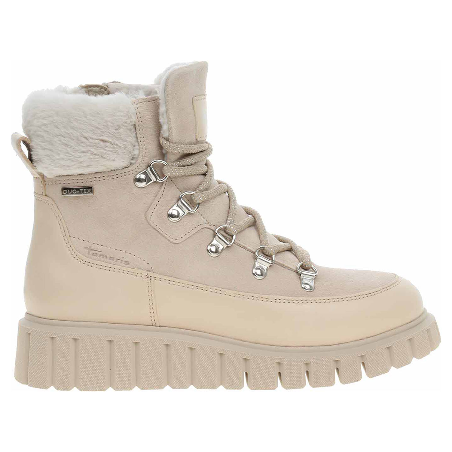 Boty Tamaris - lepená dámská kotníková obuv se svrškem z usně je vybavená vodoodpudivou membránou Duo-Tex a vyndavací stélkou. Vyměnitelné vložky do bot je možné vyndat za účelem provětrání a omytí. Značnou výhodu nabízejí vyměnitelné vložky do bot také těm uživatelům, kteří používají ortopedické vkládací stélky. Obuv je vyteplená textilní podšívkou s chloupkem. Pohodlné nazouvání zajišťuje zip na vnitřní straně. Klínek je vysoký 4,- cm. Lepená obuv - pevnost lepeného spoje může být negativně ovlivněna promáčením nebo propocením, event. opakovaným používáním nedostatečně vysušené obuvi. Při neopatrné chůzi může dojít k mechanickému uvolnění lepeného spoje - ukopnutí.