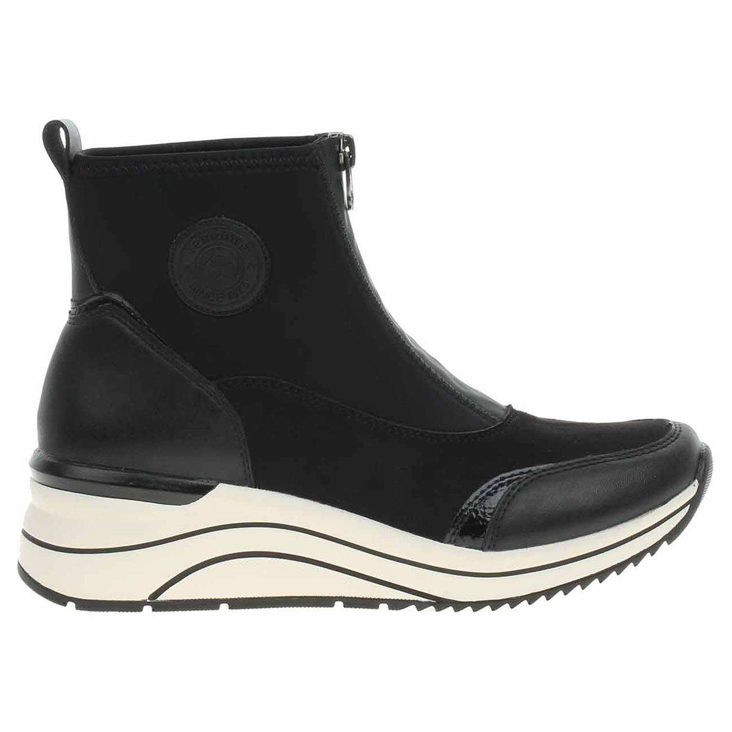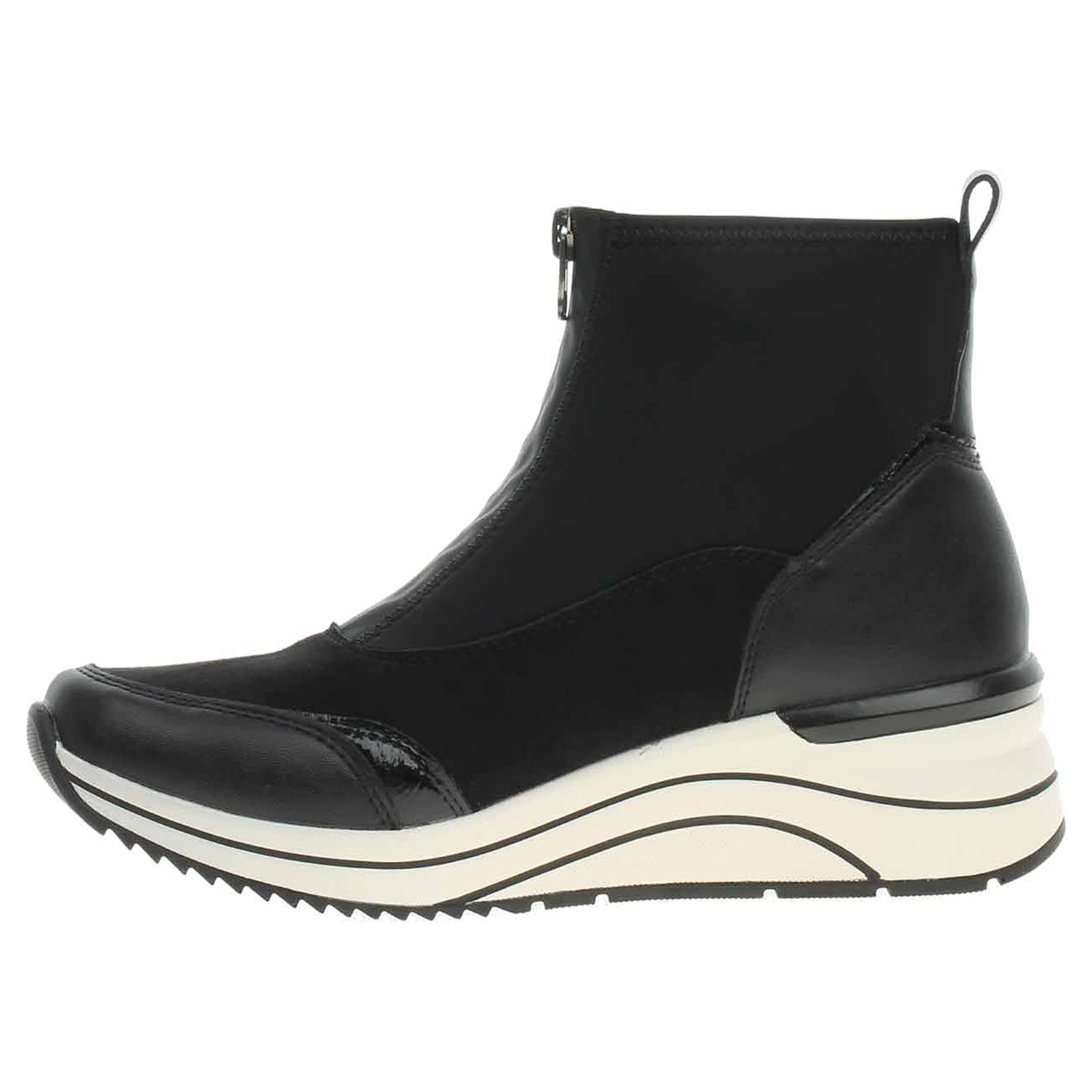 Boty Remonte - lepené dámské polokozačky nadměrné šíře mají svršek kombinovaný syntetika/textil, textilní podšívku a jsou vybavené vyndavací, paměťovou stélkou Remonte Soft s textilní nášlapnou vrstvou. Vložky do bot je možné vyndat za účelem provětrání a omytí. Značnou výhodu nabízejí vyměnitelné vložky do bot také těm uživatelům, kteří používají ortopedické vkládací stélky. Pohodlné nazouvání zajišťuje zip na nártu. Lite´n Soft = chůze jak v oblacích - ultra lehká a protiskluzová podešev + velmi příjemné materiály + extra měkká komfortní stélka. Klínek je vysoký 5,5 cm. Obuv je 100% VEGAN = při výrobě obuvi nebyly použity žádné materiály ze zvířat. Lepená obuv - pevnost lepeného spoje může být negativně ovlivněna promáčením nebo propocením, event. opakovaným používáním nedostatečně vysušené obuvi. Při neopatrné chůzi může dojít k mechanickému uvolnění lepeného spoje - ukopnutí.