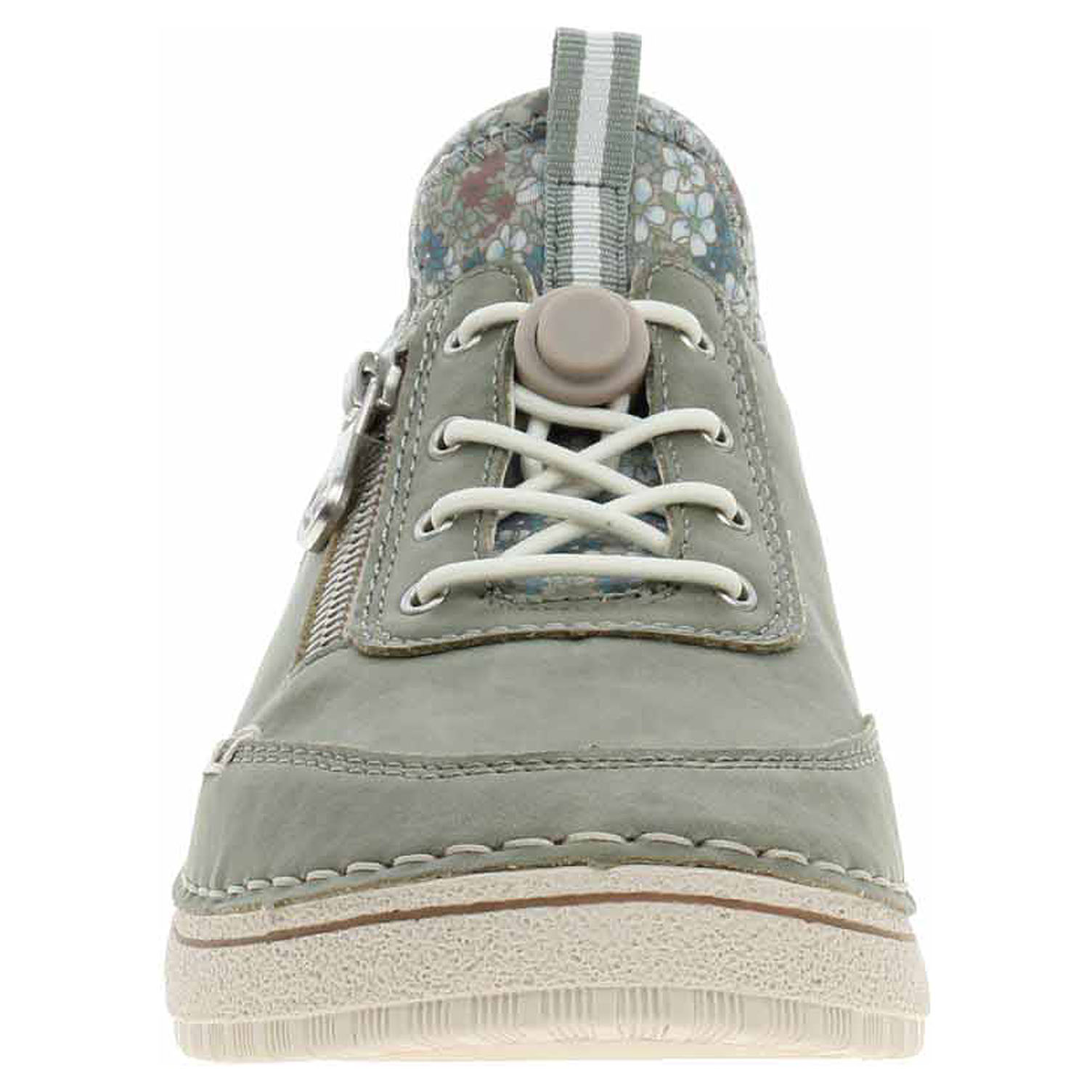 Boty Rieker - flexiblová dámská nazouvací obuv se svrškem ze syntetiky a s textilní podšívkou je vybavená vyměkčenou stélkou z usně. Pohodlné nazouvání zajišťuje textilní ponožkový nástup do obuvi. Šněrováním je provlečená nekonečná gumička s brzdičkou, která zvyšuje stabilitu nohy v obuvi. Klínek je vysoký 3,5 cm. Podešev je flexibilní a díky systému Antistress (lehkost, pružnost, prostornost a vynikající absorpce nárazů) Vám obuv zajistí pohodlí při každém kroku. Flexiblová obuv - prošívaná podešev, obuv používejte v suchém prostředí. Při zvýšené vlhkosti může dojít k promáčení obuvi. Obuv pravidelně impregnujte nebo krémujte, zvláště pak prošívaný okraj.