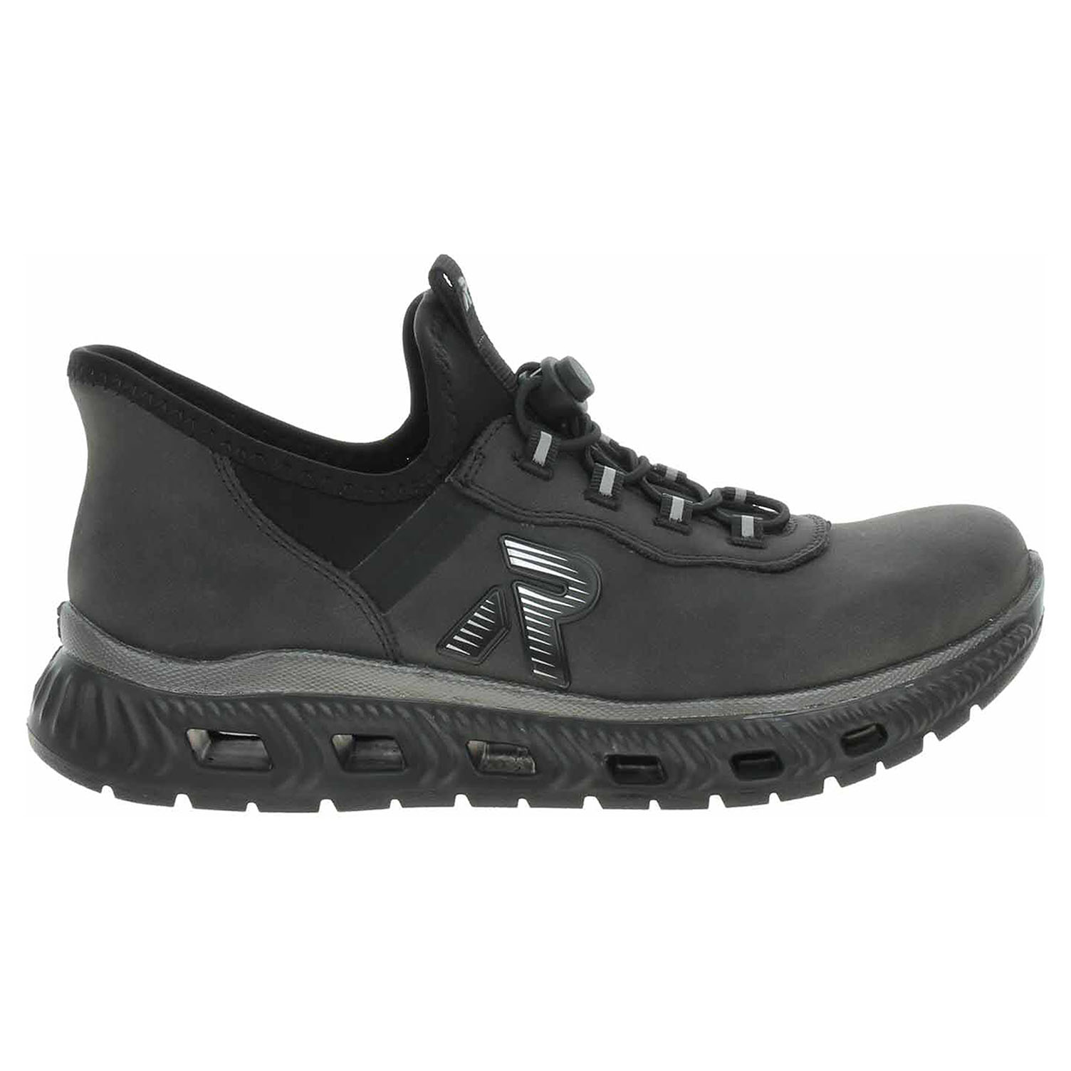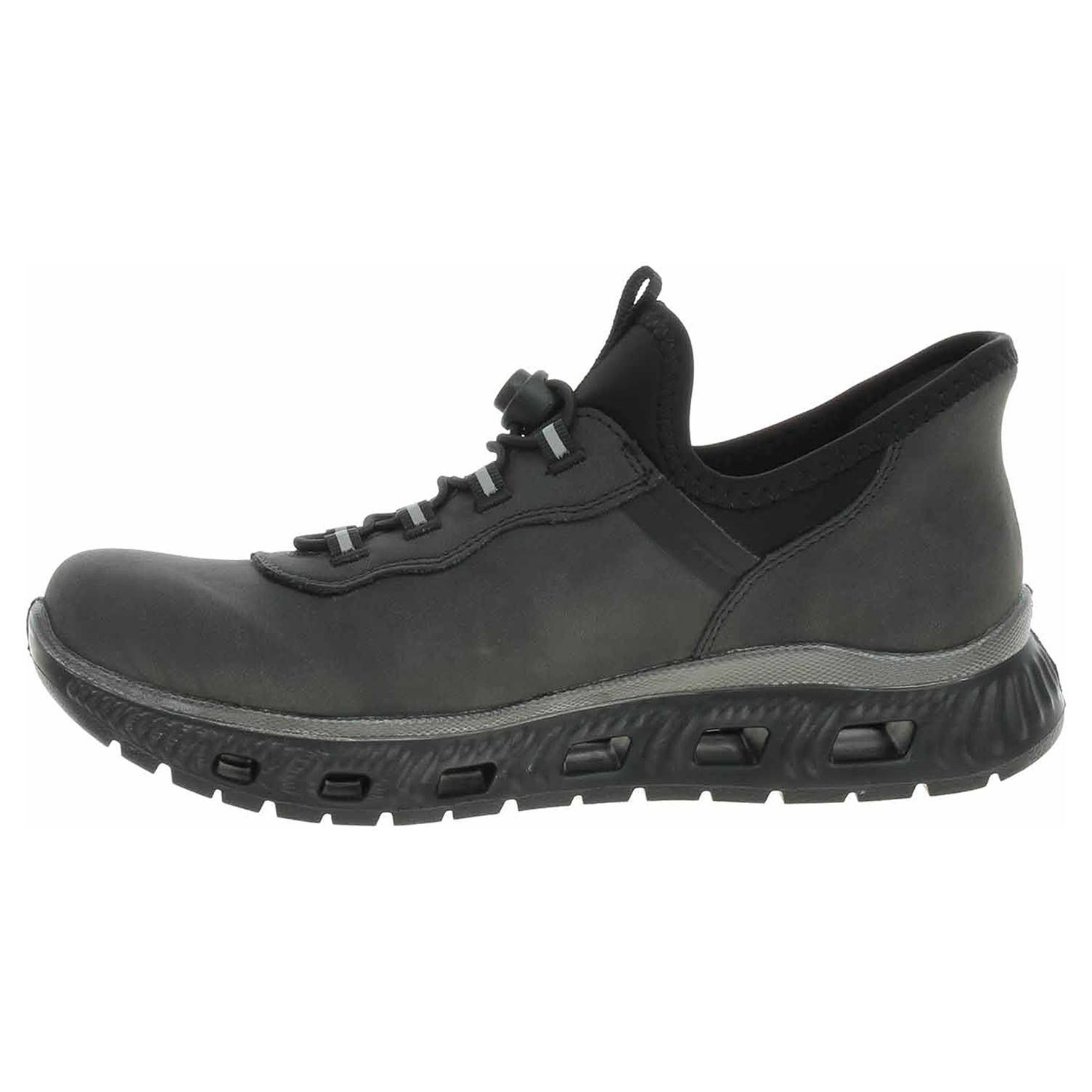 Boty Rieker - lepená dámská vycházková obuv se svrškem kombinovaným syntetika/textil a s textilní podšívkou je vybavená stélkou MemoSoft s textilní nášlapnou vrstvou. Pohodlné nazutí i vyzutí obuvi bez použití rukou zajišťuje systém Ready2GO = polstrovaný patní panel a textilní ponožkový nástup do obuvi. Rieker Light - kombinace lehké podešve a měkké stélky zajistí pocit chůze po oblacích. Šněrováním je provlečená elastická gumička s brzdičkou. Klínek je vysoký 3,8 cm. Podešev je flexibilní a díky systému Antistress (lehkost, pružnost, prostornost a vynikající absorpce nárazů) Vám obuv zajistí pohodlí při každém kroku. Lepená obuv - pevnost lepeného spoje může být negativně ovlivněna promáčením nebo propocením, event. opakovaným používáním nedostatečně vysušené obuvi. Při neopatrné chůzi může dojít k mechanickému uvolnění lepeného spoje - ukopnutí.