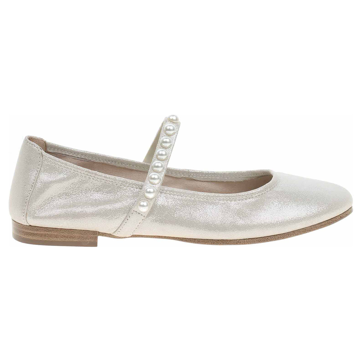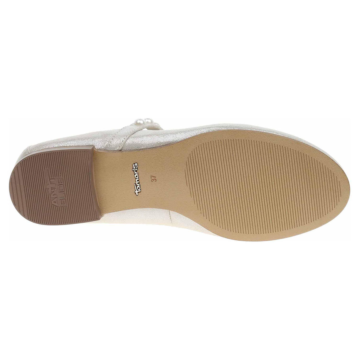 Boty Tamaris - lepené dámské baleriny se svrškem z usně a s textilní podšívkou jsou vybavené paměťovou stélkou Touch it s nášlapnou vrstvou ze syntetiky, která se přizpůsobuje vašemu chodidlu a poskytuje při chůzi optimální komfort. Ozdobený pásek přes nárt, který je na vnitřní straně vybavený vsazenou gumičkou, zajišťuje stabilitu nohy v obuvi. Podpatek s protiskluzovou úpravou AntiSlide je vysoký 1,5 cm. Lepená obuv - pevnost lepeného spoje může být negativně ovlivněna promáčením nebo propocením, event. opakovaným používáním nedostatečně vysušené obuvi. Při neopatrné chůzi může dojít k mechanickému uvolnění lepeného spoje - ukopnutí.