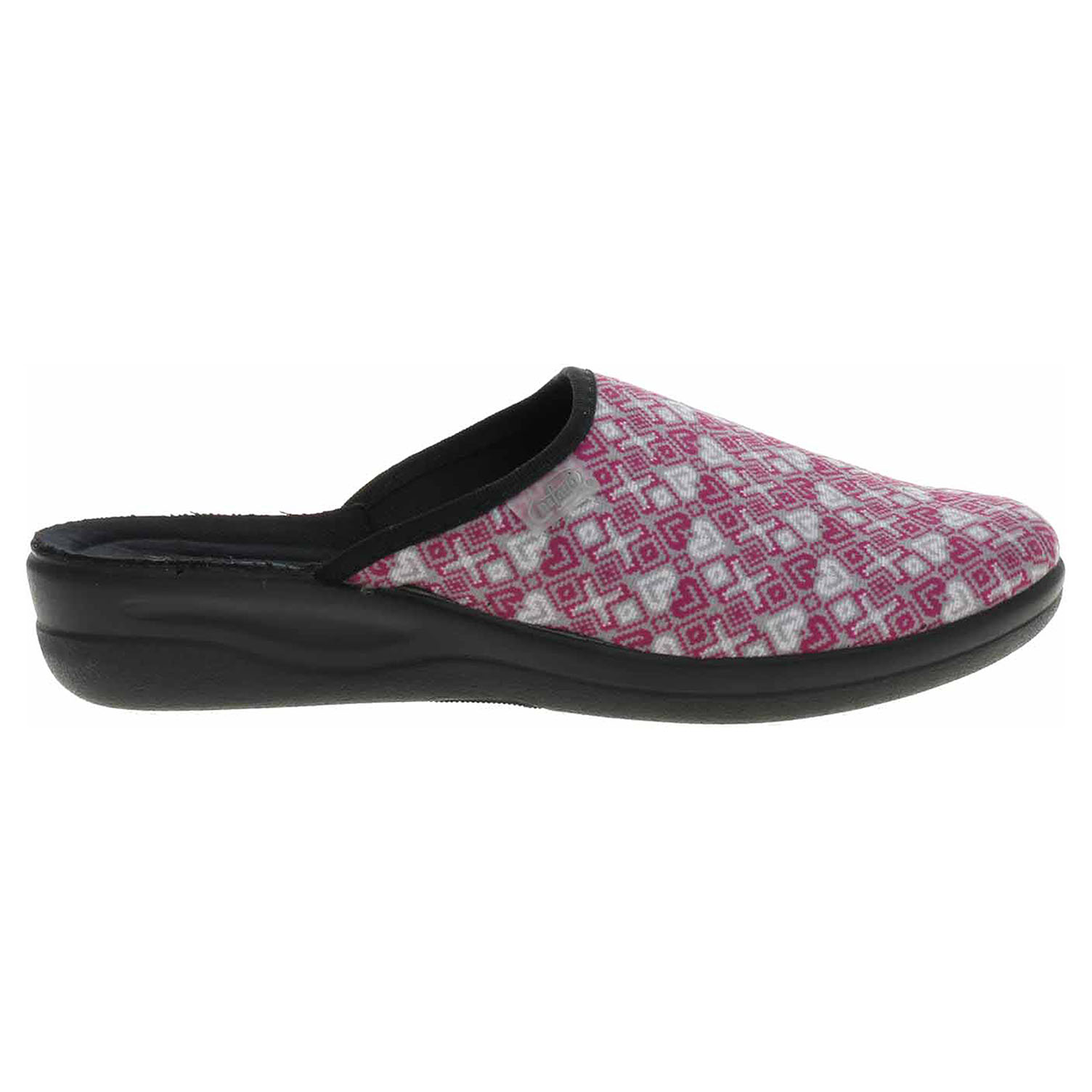 Boty Befado - dámské domácí pantofle s plnou špičkou na klínku vysokém 3,5 cm. Svršek, podšívka i stélka jsou textilní.