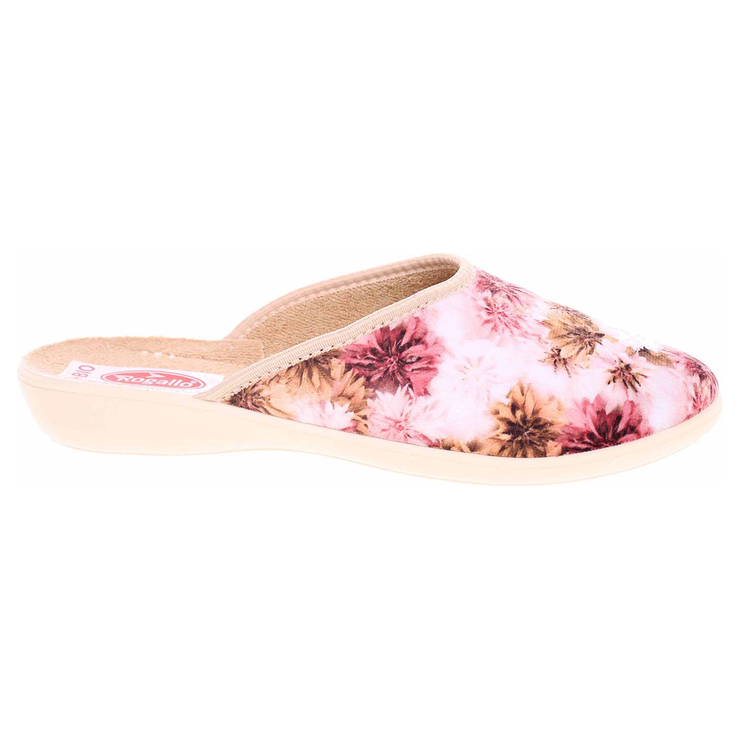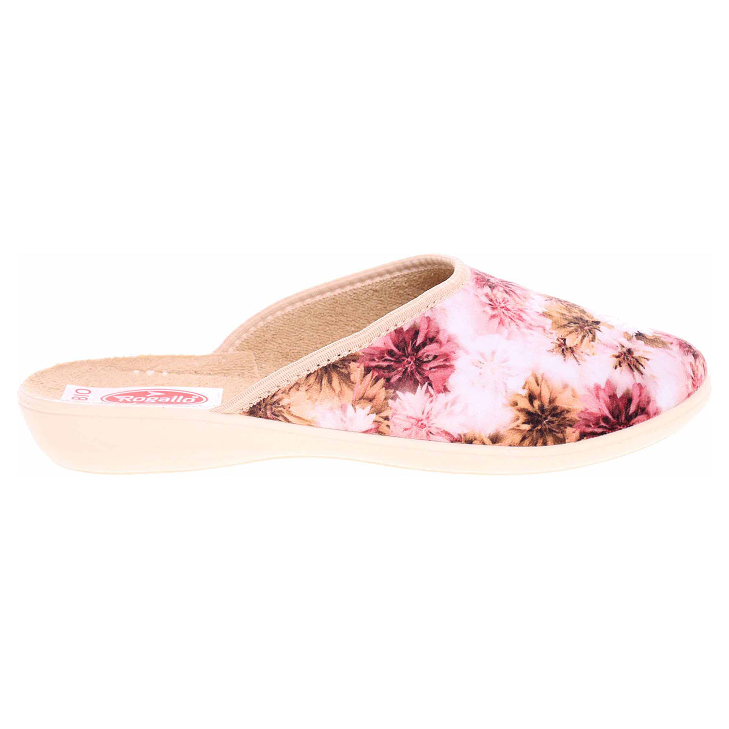 Boty Rogallo - dámské domácí pantofle s plnou špičkou na klínku vysokém 2,- cm. Svršek i stélka jsou textilní.