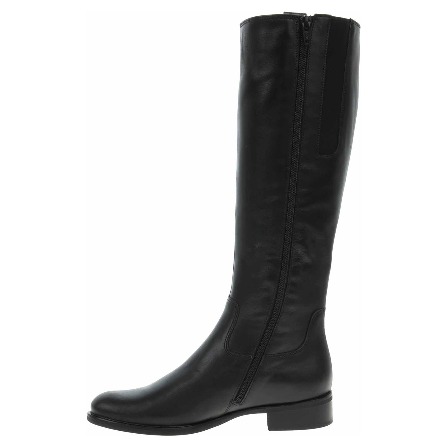 Boty Gabor - lepené dámské kozačky šíře F se svrškem z usně vhodné pro užší lýtko velikosti S jsou na vnitřní straně lýtka vybavené vsazenou gumičkou a zipem. Obuv má vyndavací stélky a je vyteplená textilní podšívkou bez chlupu. Vyměnitelné vložky do bot je možné vyndat za účelem provětrání a omytí. Podpatek je vysoký 3,- cm. Lepená obuv - pevnost lepeného spoje může být negativně ovlivněna promáčením nebo propocením, event. opakovaným používáním nedostatečně vysušené obuvi. Při neopatrné chůzi může dojít k mechanickému uvolnění lepeného spoje - ukopnutí.