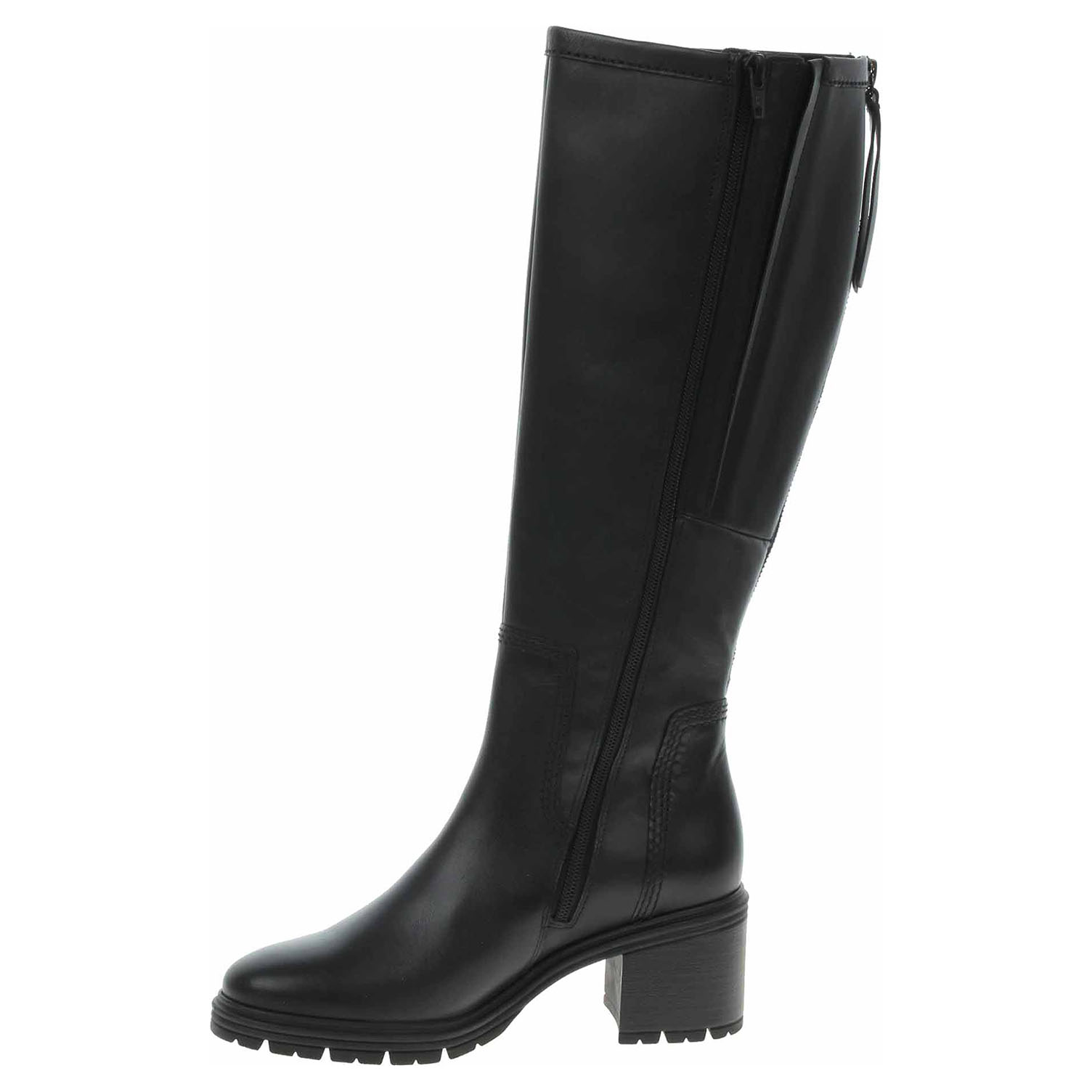 Boty Gabor - lepené dámské kozačky se svrškem z usně vhodné pro středně široké lýtko velikosti M jsou na zadní straně vybavené Vario systémem (vsazená gumička + zip po celé výšce), který umožňuje částečné zvětšení objemu. Obuv se zipem je vyteplená textilní podšívkou bez chlupu. Vyměnitelné vložky do bot je možné vyndat za účelem provětrání a omytí. Značnou výhodu nabízejí vyměnitelné vložky do bot také těm uživatelům, kteří používají ortopedické vkládací stélky. Podpatek je vysoký 6,5 cm a platforma je vysoká 1,5 cm. Lepená obuv - pevnost lepeného spoje může být negativně ovlivněna promáčením nebo propocením, event. opakovaným používáním nedostatečně vysušené obuvi. Při neopatrné chůzi může dojít k mechanickému uvolnění lepeného spoje - ukopnutí.