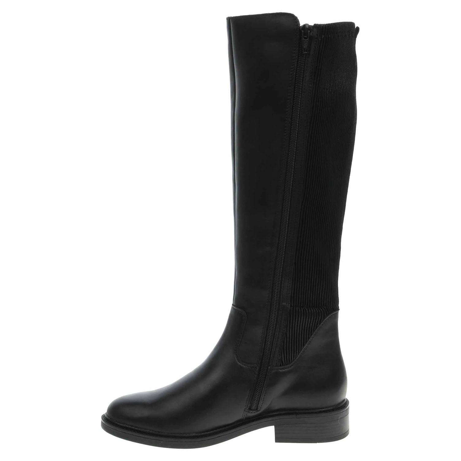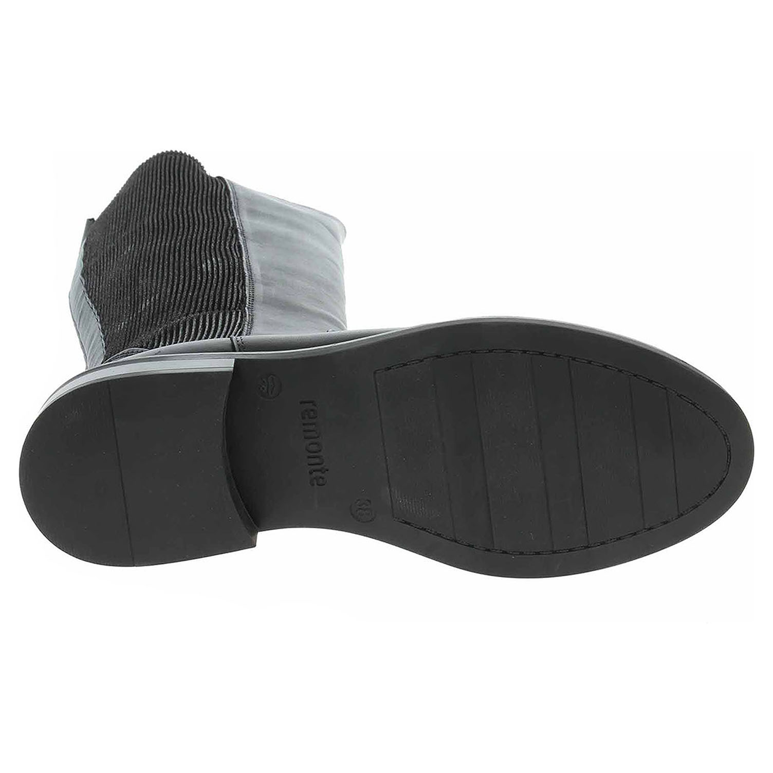 Boty Remonte - lepené dámské kozačky vhodné pro středně široké lýtko velikosti M jsou vybavené vyndavací stélkou Remonte Soft, zipem a Vario systémem (strečový materiál po celé výšce lýtka), který umožňuje částečné zvětšení objemu a přizpůsobení se tvaru lýtka. Svršek je kombinovaný useň/textil. Obuv je vyteplená textilní podšívkou s jemným chloupkem. Remonte Soft - unikátní stélka z prodyšného materiálu, která svým tvarem a materiálem zajišťuje pocit pohodlí při celodenním nošení. Podpatek je vysoký 3,6 cm. Lepená obuv - pevnost lepeného spoje může být negativně ovlivněna promáčením nebo propocením, event. opakovaným používáním nedostatečně vysušené obuvi. Při neopatrné chůzi může dojít k mechanickému uvolnění lepeného spoje - ukopnutí.