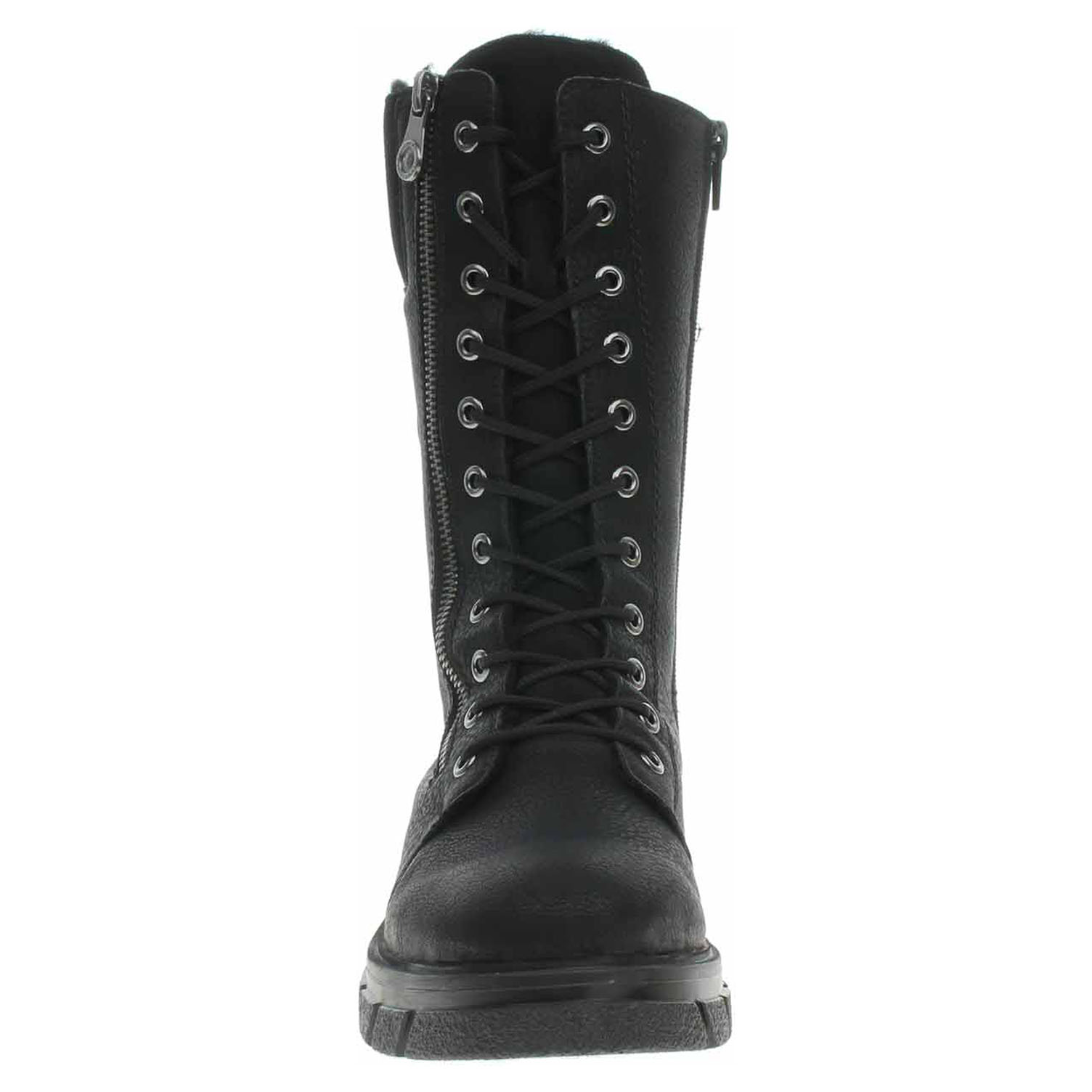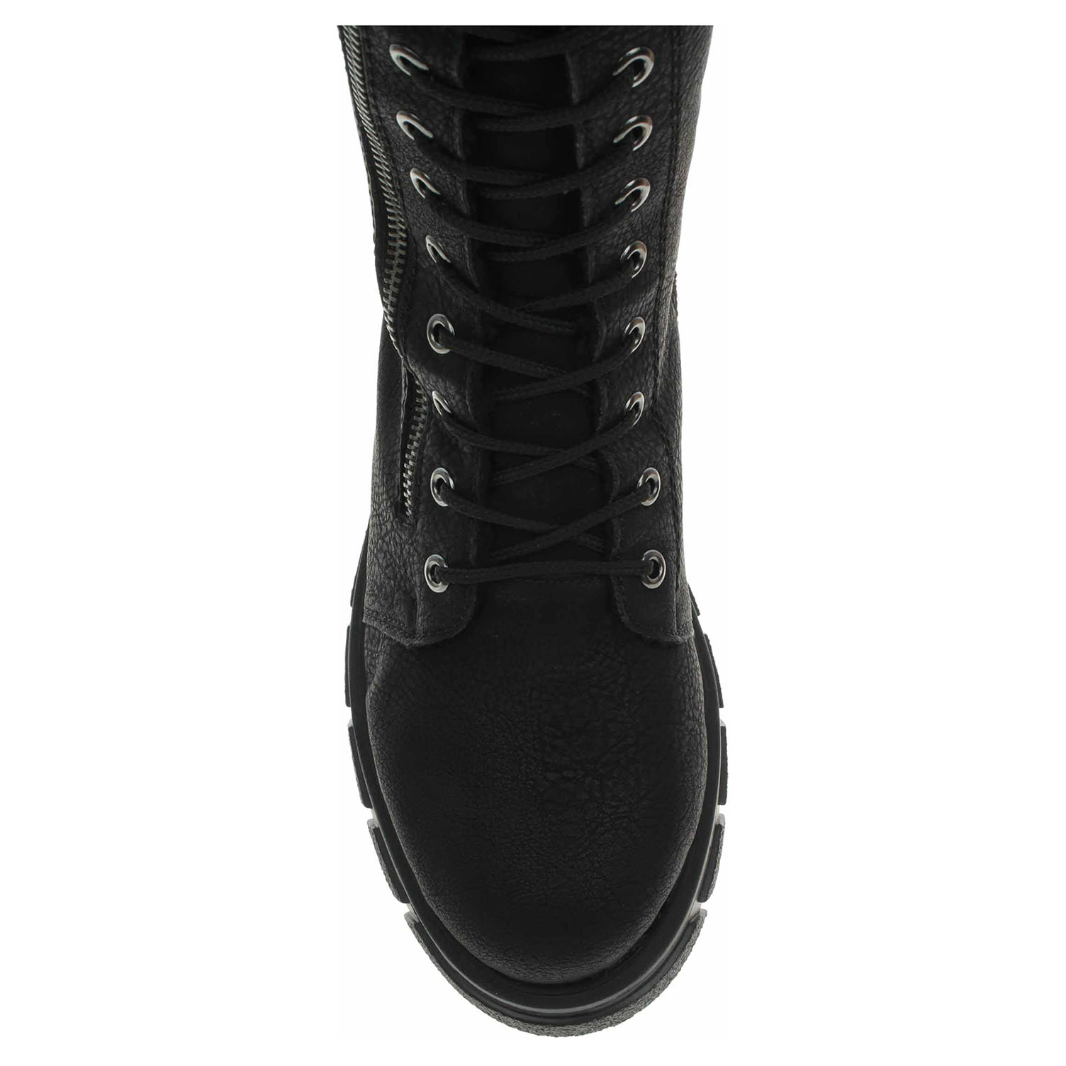 Boty Rieker - lepená dámská obuv se svrškem ze syntetiky a s textilní stélkou je vyteplená textilní podšívkou s jemným chloupkem. Pohodlné nazouvání zajišťuje šněrování a zip na vnitřní straně. Zip na straně vnější má pouze ozdobnou funkci. Podpatek je vysoký 4,2 cm a platforma je vysoká 2,5 cm. Podešev je flexibilní a díky systému Antistress (lehkost, pružnost, prostornost a vynikající absorpce nárazů) Vám obuv zajistí pohodlí při každém kroku. Lepená obuv - pevnost lepeného spoje může být negativně ovlivněna promáčením nebo propocením, event. opakovaným používáním nedostatečně vysušené obuvi. Při neopatrné chůzi může dojít k mechanickému uvolnění lepeného spoje - ukopnutí.
