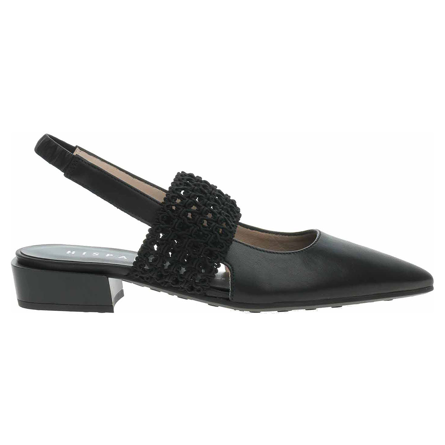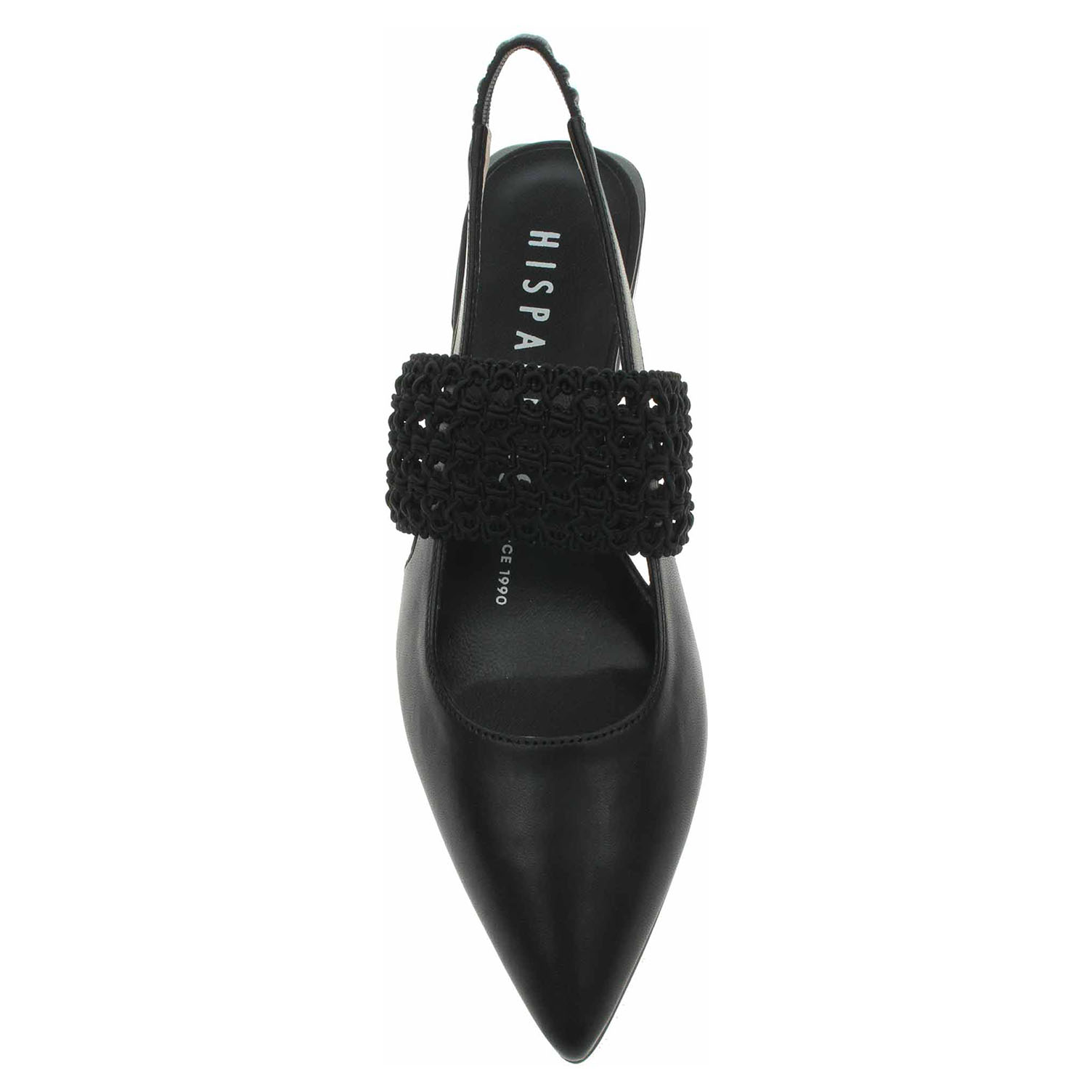Boty Hispanitas - módní dámské lodičky s volnou patou a s úpletovým páskem přes nárt mají svršek, podšívku i stélku z usně. Pohodlné nazouvání zajišťuje pásek přes patu vybavený vsazenou gumičkou. Technologie Triflow: trojité polstrování v oblasti běhounu, které absorbuje nárazy a poskytuje tlumený efekt při chůzi. Podešev z termoplastického polyuretanu má podpatek vysoký 2,5 cm. Módní obuv - je určena pro krátkodobé nošení v nenáročných podmínkách. Prvořadá je módnost nikoliv životnost. Obuv není vhodná pro každodenní používání.