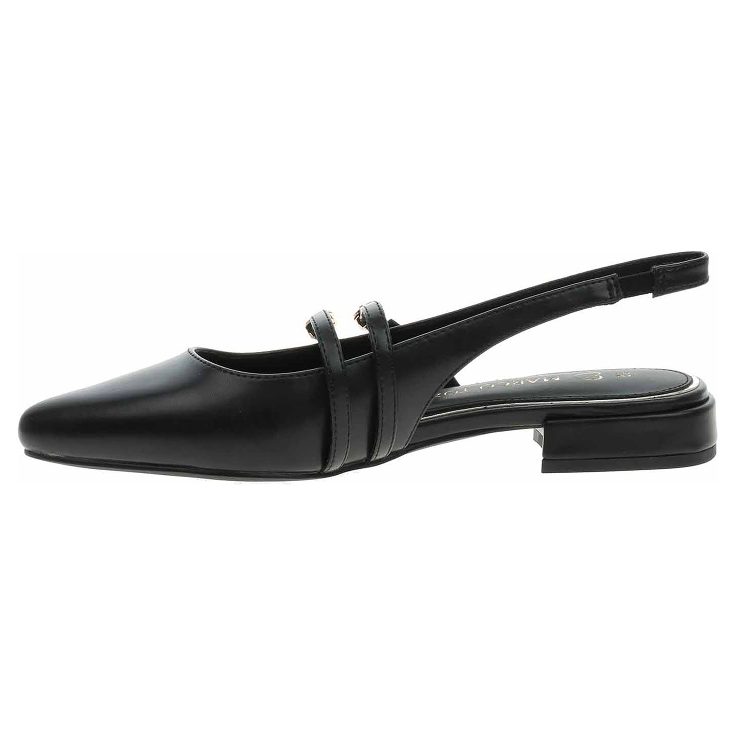 Boty Marco Tozzi - lepené dámské lodičky s volnou patou mají svršek ze syntetiky, textilní podšívku a jsou vybavené vyměkčenou stélkou Feel Me s nášlapnou vrstvou ze syntetiky, která se přizpůsobuje vašemu chodidlu a zajišťuje optimální komfort při chůzi. Pásek přes patu je vybavený vsazenou gumičku. Pásky přes nárt se zapínají na přezky a umožňují tak variabilní úpravu objemu nártu. Podpatek vysoký 2,- cm. Obuv je 100% VEGAN = při výrobě obuvi nebyly použity žádné materiály ze zvířat. Lepená obuv - pevnost lepeného spoje může být negativně ovlivněna promáčením nebo propocením, event. opakovaným používáním nedostatečně vysušené obuvi. Při neopatrné chůzi může dojít k mechanickému uvolnění lepeného spoje - ukopnutí.