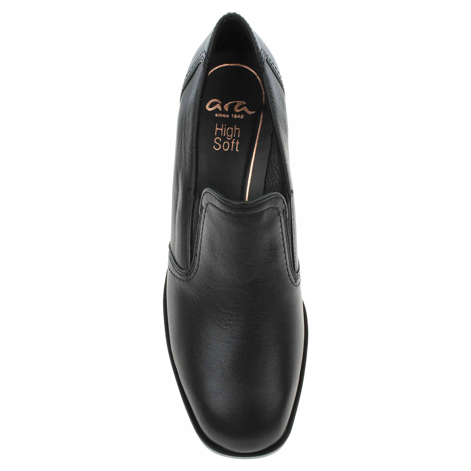 Boty Ara - lepené dámské mokasiny nadměrné šíře H se svrškem, podšívkou i stélkou z usně. HIGH SOFT = modelová řada, která se vyznačuje měkkým svrškem, polstrovanou stélkou a flexibilní podešví. Podpatek je vysoký 5,5 cm. Lepená obuv - pevnost lepeného spoje může být negativně ovlivněna promáčením nebo propocením, event. opakovaným používáním nedostatečně vysušené obuvi. Při neopatrné chůzi může dojít k mechanickému uvolnění lepeného spoje - ukopnutí.