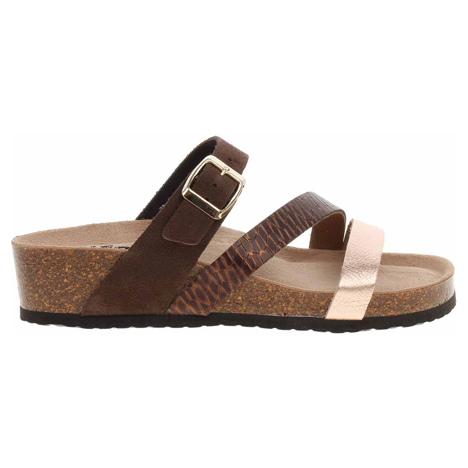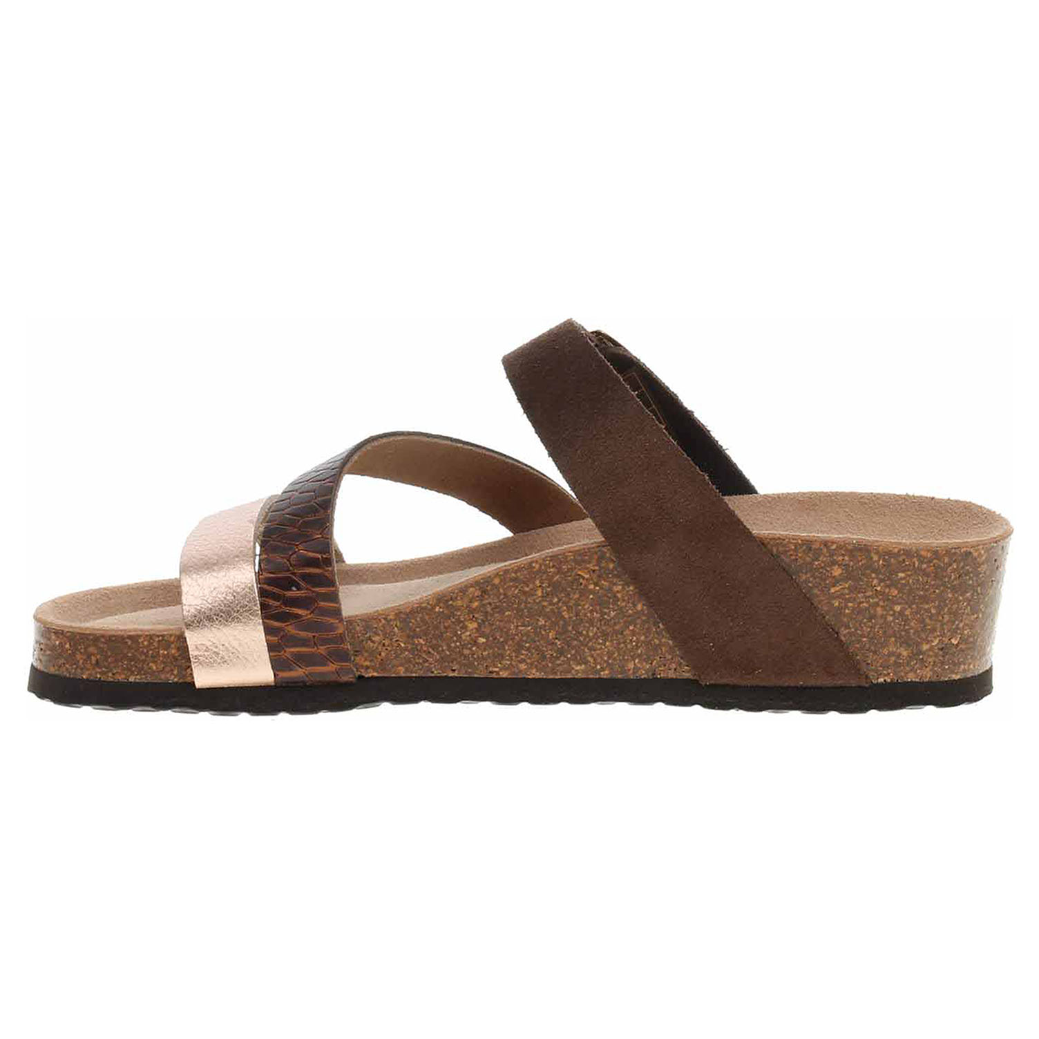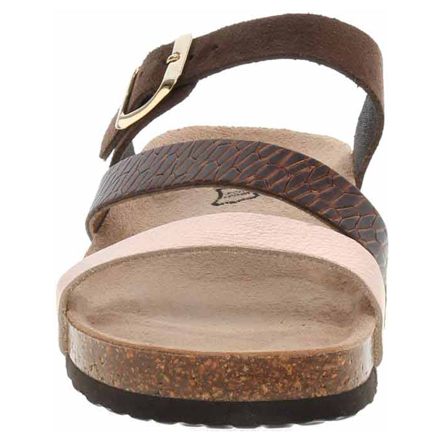 Boty Bio Life - lepené dámské pantofle se svrškem i podšívkou z usně jsou vybavené korkovou, anatomicky tvarovanou stélkou potaženou kvalitní usní. Pásek přes nárt se zapíná na přezku. Klínek je vysoký 4,- cm. Lepená obuv - pevnost lepeného spoje může být negativně ovlivněna promáčením nebo propocením, event. opakovaným používáním nedostatečně vysušené obuvi. Při neopatrné chůzi může dojít k mechanickému uvolnění lepeného spoje - ukopnutí.