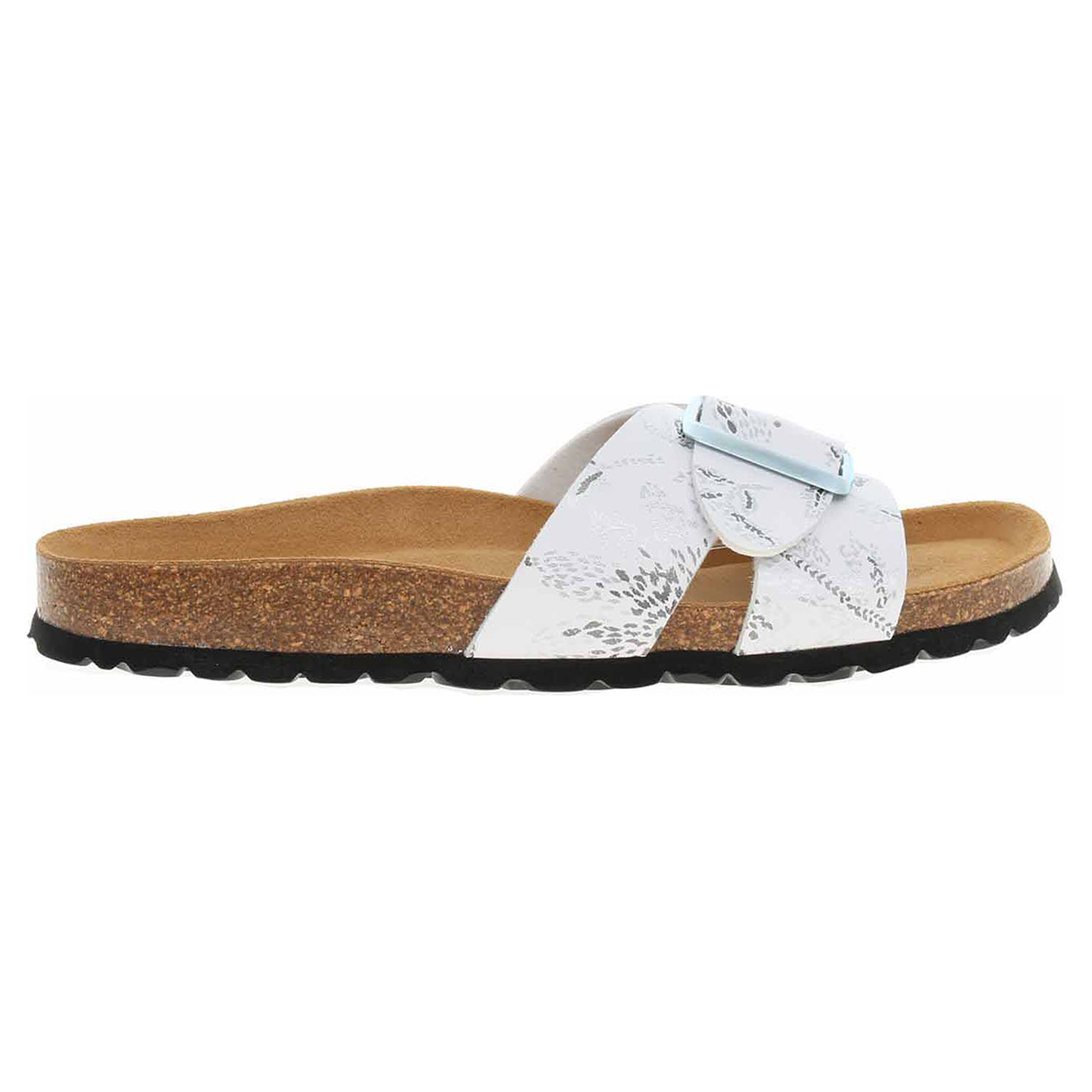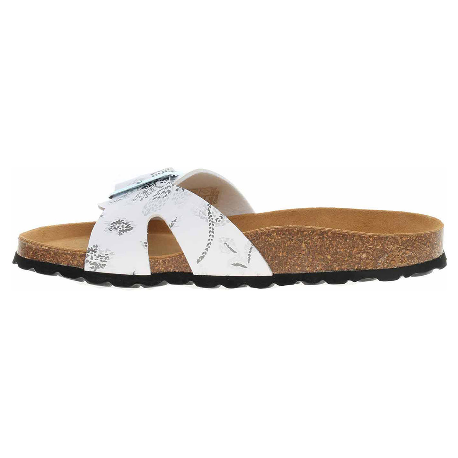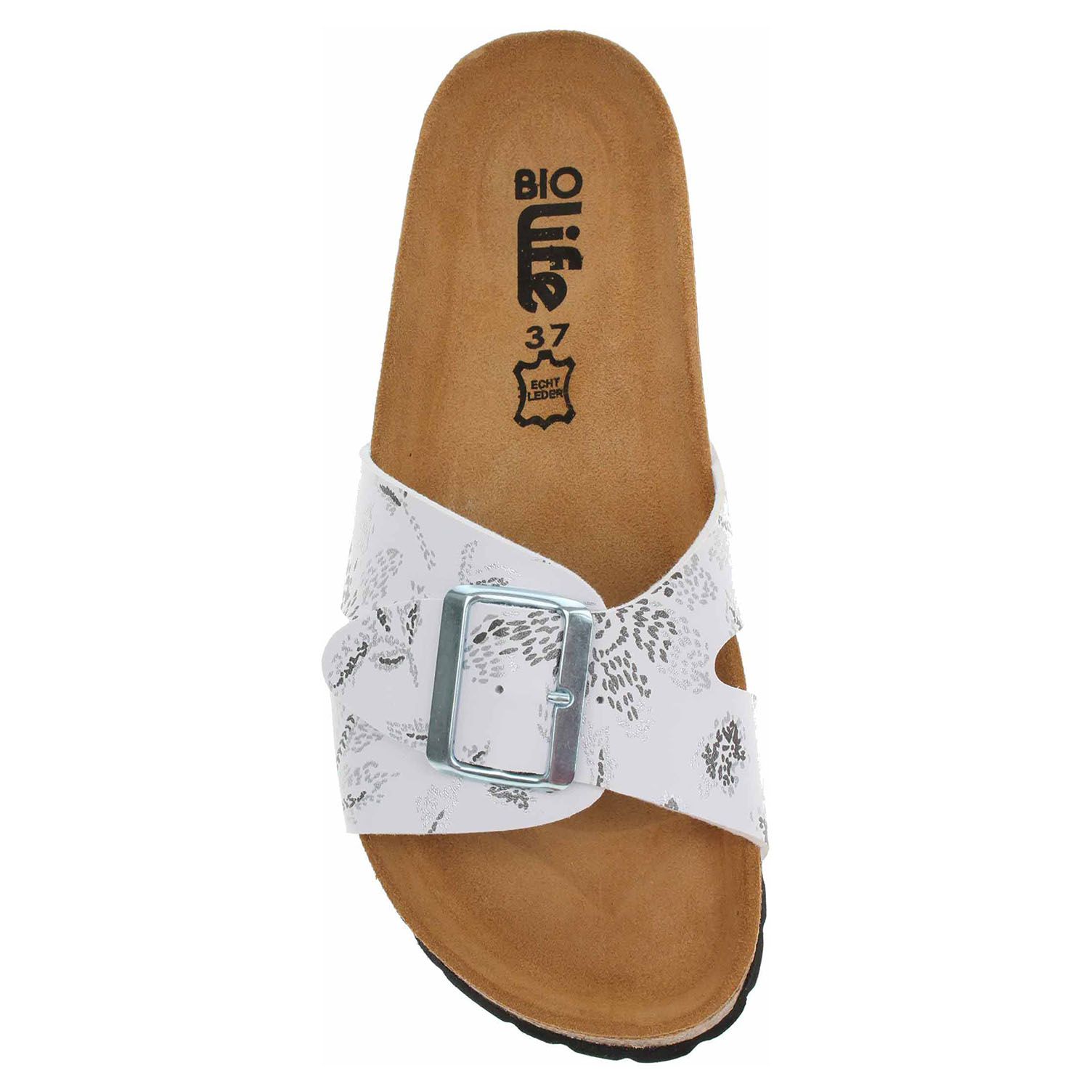 Boty Bio Life - lepené dámské pantofle se svrškem ze syntetického materiálu Birko-Flor jsou vybavené korkovou anatomicky tvarovanou stélkou potaženou kvalitní usní. Pásek přes nárt se zapíná na přezku. Klínek je vysoký 2,5 cm. Lepená obuv - pevnost lepeného spoje může být negativně ovlivněna promáčením nebo propocením, event. opakovaným používáním nedostatečně vysušené obuvi. Při neopatrné chůzi může dojít k mechanickému uvolnění lepeného spoje - ukopnutí.