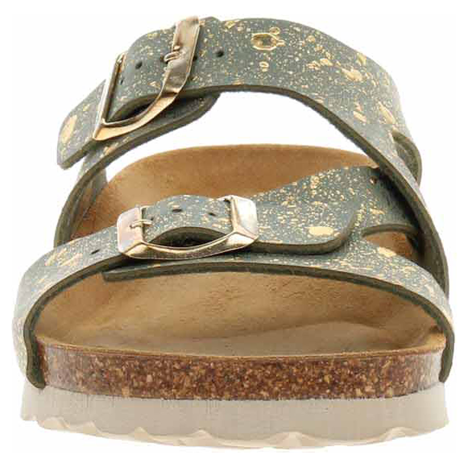 Boty Bio Life - lepené dámské pantofle se svrškem ze syntetického materiálu Birko-Flor jsou vybavené korkovou anatomicky tvarovanou stélkou potaženou kvalitní usní. Pásky přes nárt se zapínají na přezky. Klínek je vysoký 3,- cm. Lepená obuv - pevnost lepeného spoje může být negativně ovlivněna promáčením nebo propocením, event. opakovaným používáním nedostatečně vysušené obuvi. Při neopatrné chůzi může dojít k mechanickému uvolnění lepeného spoje - ukopnutí.