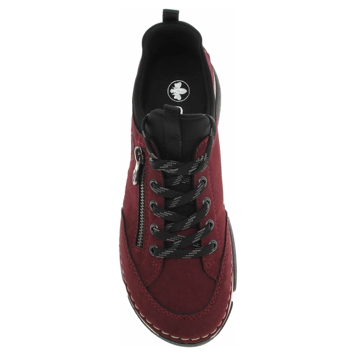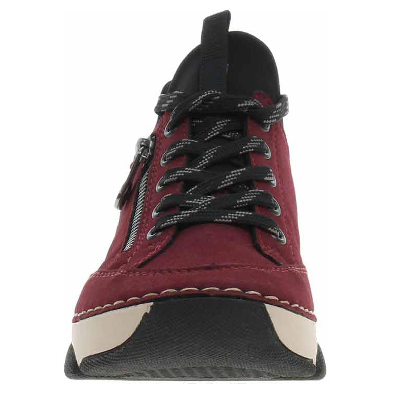 Boty Rieker - flexiblová dámská nazouvací obuv se svrškem kombinovaným syntetika/textil je vybavená vyměkčenou stélkou z usně. Pohodlné nazouvání zajišťuje textilní ponožkový nástup do obuvi a šněrování zvyšuje stabilitu nohy v obuvi. Zip na vnější straně nártu má pouze ozdobnou funkci. Klínek je vysoký 3,5 cm. Podešev je flexibilní a díky systému Antistress (lehkost, pružnost, prostornost a vynikající absorpce nárazů) Vám obuv zajistí pohodlí při každém kroku. Flexiblová obuv - prošívaná podešev, obuv používejte v suchém prostředí. Při zvýšené vlhkosti může dojít k promáčení obuvi. Obuv pravidelně impregnujte nebo krémujte, zvláště pak prošívaný okraj.