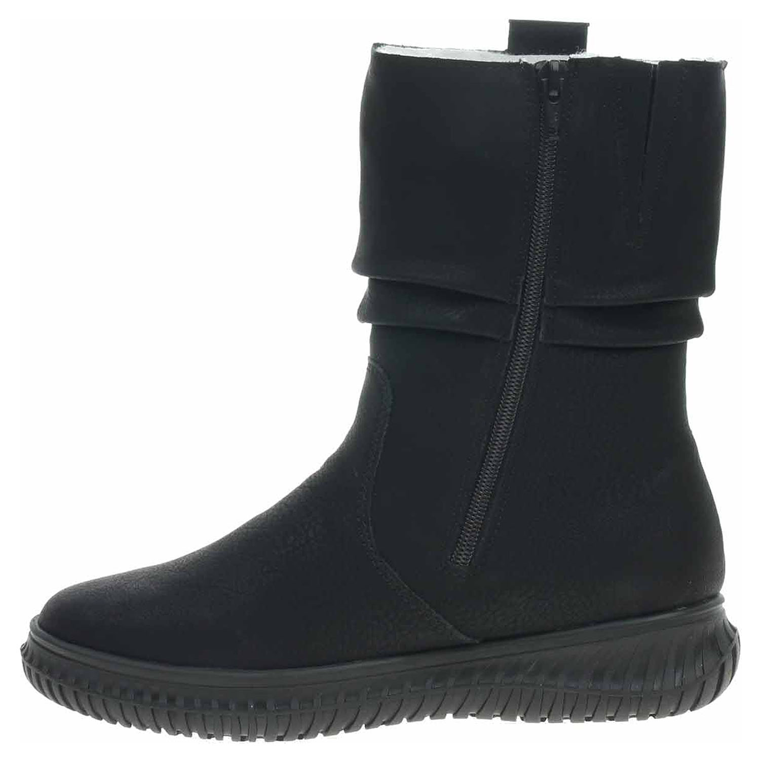 Boty Rieker - lepené dámské polokozačky se svrškem ze syntetiky a s textilní stélkou jsou vyteplené textilní podšívkou s jemným chloupkem. Pohodlné nazouvání zajišťuje zip a vsazená gumička na vnitřní straně. Klínek je vysoký 4,- cm. Podešev je flexibilní a díky systému Antistress skvěle tlumí nárazy a otřesy. Lepená obuv - pevnost lepeného spoje může být negativně ovlivněna promáčením nebo propocením, event. opakovaným používáním nedostatečně vysušené obuvi. Při neopatrné chůzi může dojít k mechanickému uvolnění lepeného spoje - ukopnutí.