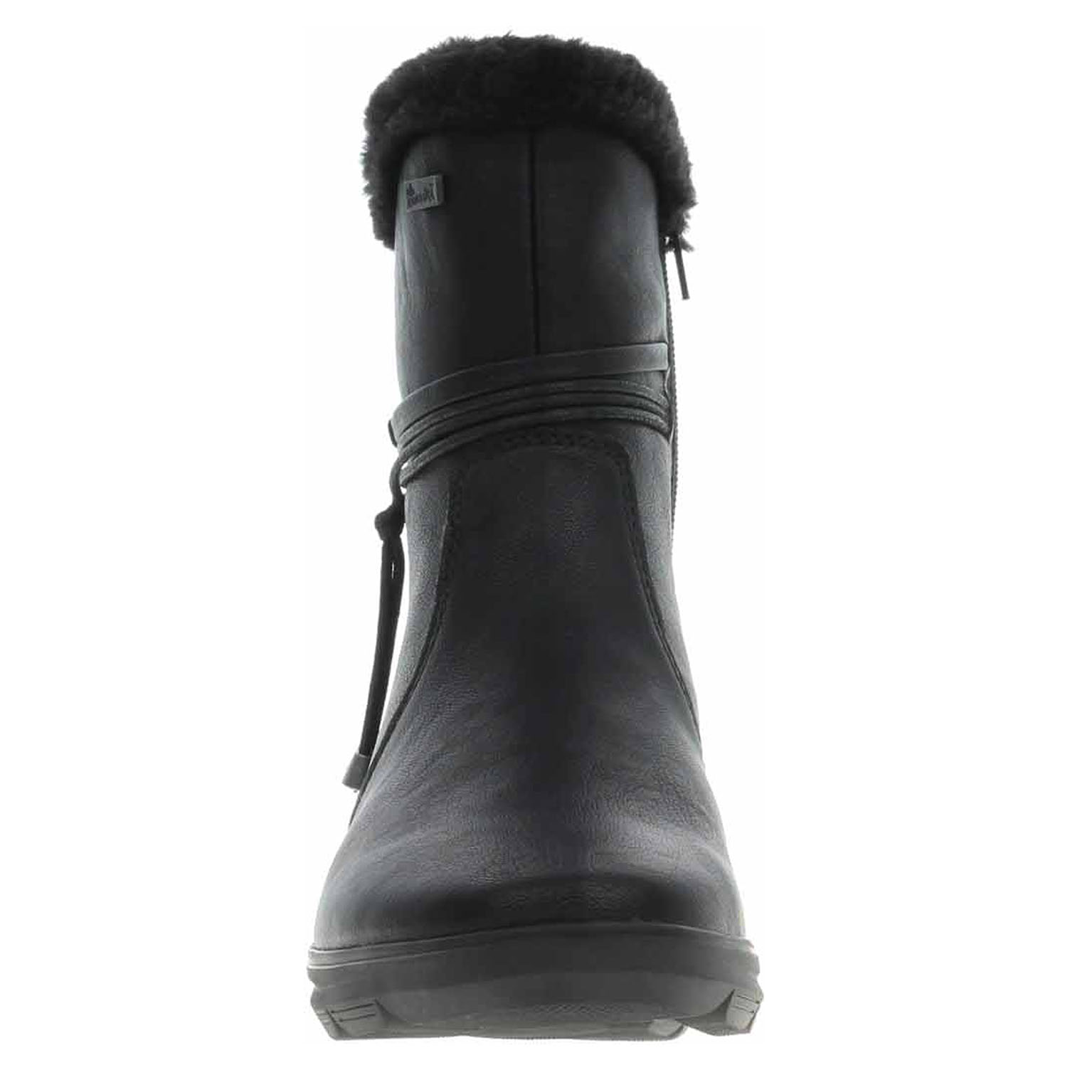 Boty Rieker - lepené dámské polokozačky se svrškem ze syntetiky jsou vybavené zipem na vnitřní straně, vodoodpudivou membránou RiekerTex a jsou vyteplené textilní podšívkou s chlupem. Klínek je vysoký 3,5 cm a platforma je vysoká 2,- cm. Podešev je flexibilní a díky systému Antistress skvěle tlumí nárazy a otřesy. Lepená obuv - pevnost lepeného spoje může být negativně ovlivněna promáčením nebo propocením, event. opakovaným používáním nedostatečně vysušené obuvi. Při neopatrné chůzi může dojít k mechanickému uvolnění lepeného spoje - ukopnutí.