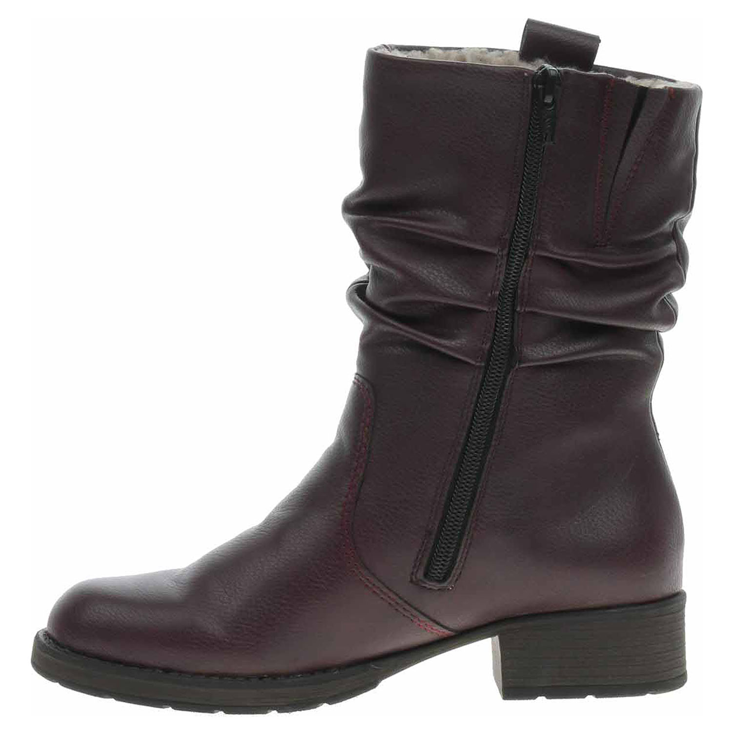 Boty Rieker - lepené dámské polokozačky se svrškem ze syntetiky a s textilní stélkou jsou vyteplené textilní podšívkou s jemným chloupkem. Pohodlné nazouvání zajišťuje zip a vsazená gumička na vnitřní straně. Podpatek je vysoký 3,- cm. Podešev je flexibilní a díky systému Antistress skvěle tlumí nárazy a otřesy. Lepená obuv - pevnost lepeného spoje může být negativně ovlivněna promáčením nebo propocením, event. opakovaným používáním nedostatečně vysušené obuvi. Při neopatrné chůzi může dojít k mechanickému uvolnění lepeného spoje - ukopnutí.