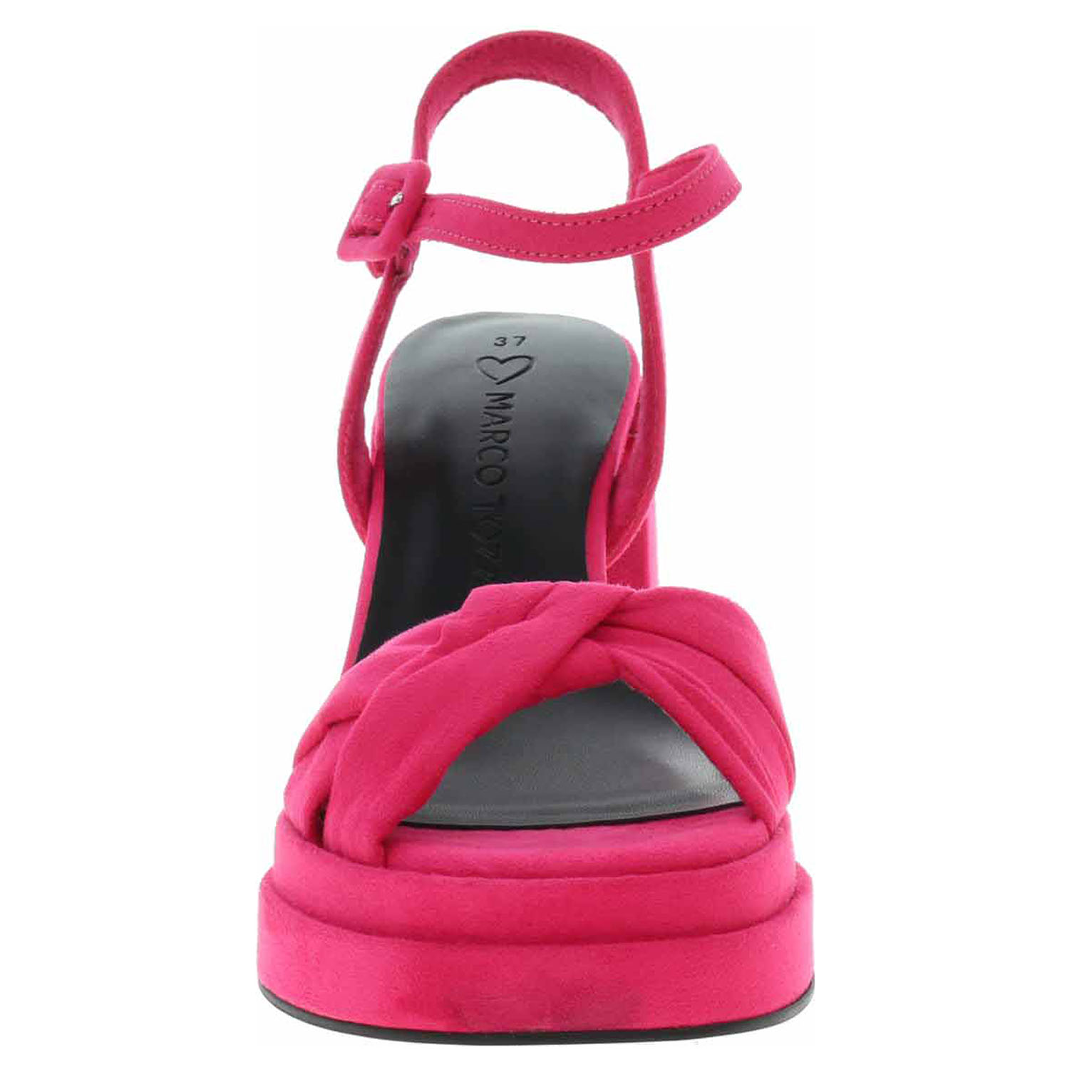 Boty Marco Tozzi - módní dámské sandály s textilním svrškem i podšívkou jsou vybavené stélkou Feel me s nášlapnou vrstvou ze syntetiky, která se přizpůsobuje vašemu chodidlu a zajišťuje optimální komfort při chůzi. Pásek přes kotník se zapíná na přezku. Podpatek je vysoký 9,- cm a platforma je vysoká 3,- cm. Módní obuv - je určena pro krátkodobé nošení v nenáročných podmínkách. Prvořadá je módnost nikoliv životnost. Obuv není vhodná pro každodenní používání.