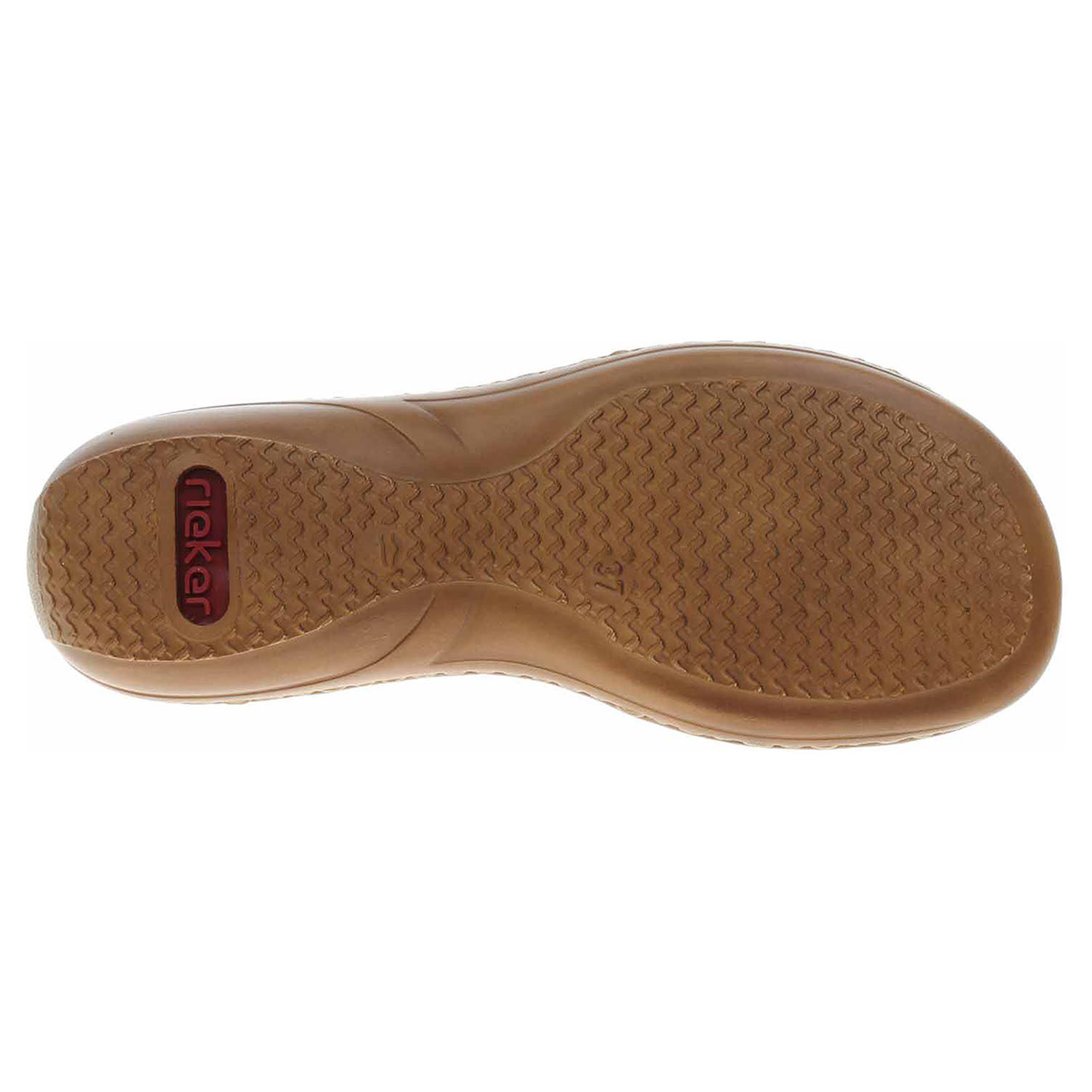 Boty Rieker - dámské sandály se svrškem a s podšívkou ze syntetiky jsou vybavené vyměkčenou stélkou s textilní našlapnou vrstvou. Pro pohodlné nazouvání je ozdobným kroužkem přes nárt provlečená gumička. Podešev je flexibilní a díky systému Antistress skvěle tlumí nárazy a otřesy. Klínek je vysoký 3,5 cm.
