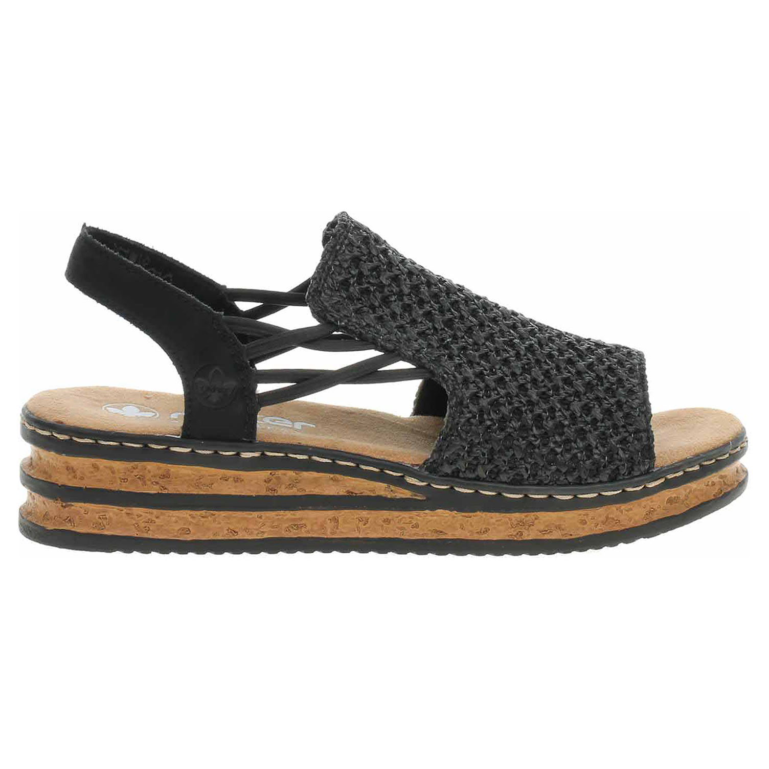 Boty Rieker - dámské sandály se svrškem kombinovaným textil/syntetika a s textilní podšívkou i stélkou. Klínek je vysoký 4,1 cm. Gumičky na vnější i na vnitřní straně kotníku umožňují pohodlné nazouvání a zajišťují vyšší stabilitu nohy v obuvi. Podešev je flexibilní a díky systému Antistress (lehkost, pružnost, prostornost a vynikající absorpce nárazů) Vám obuv zajistí pohodlí při každém kroku.