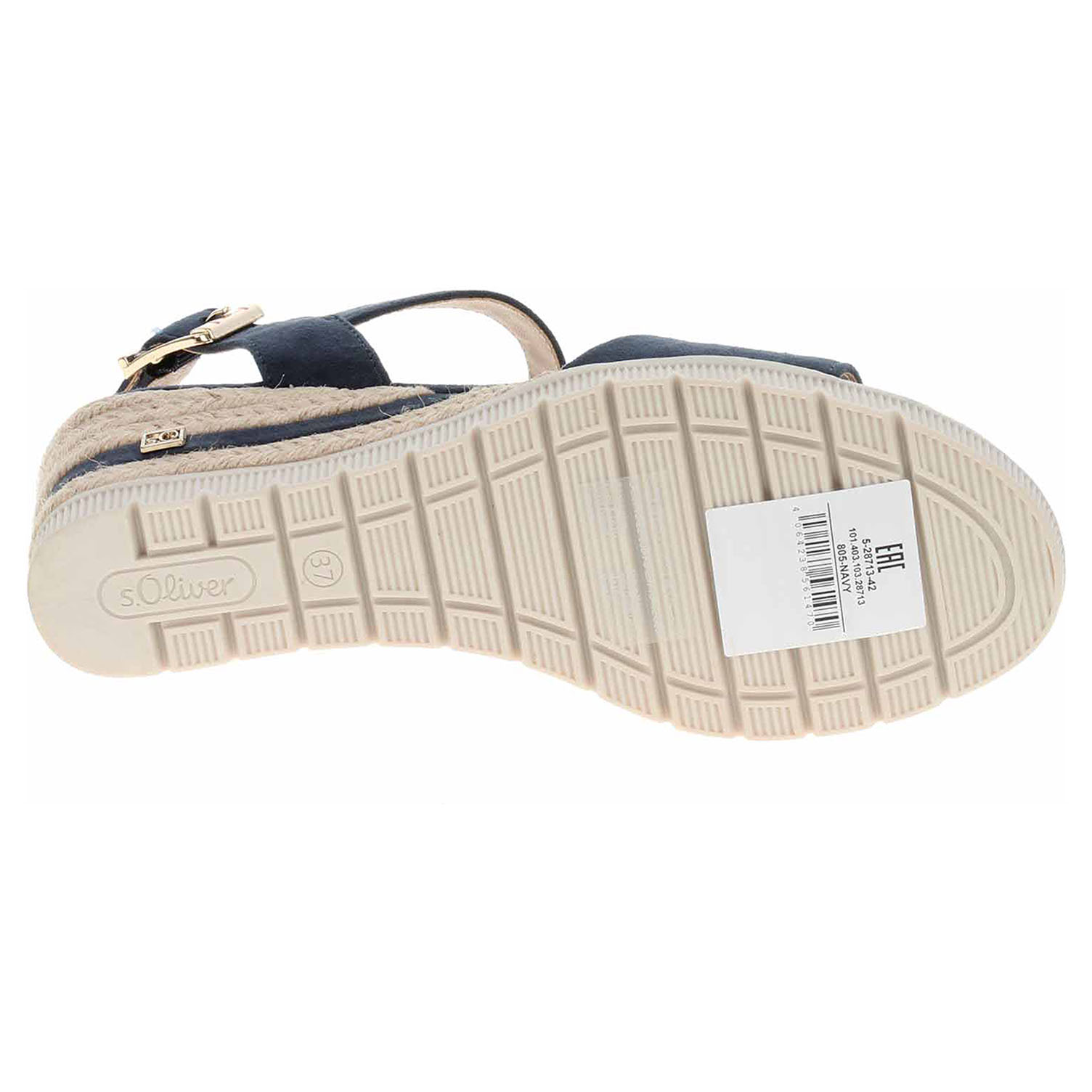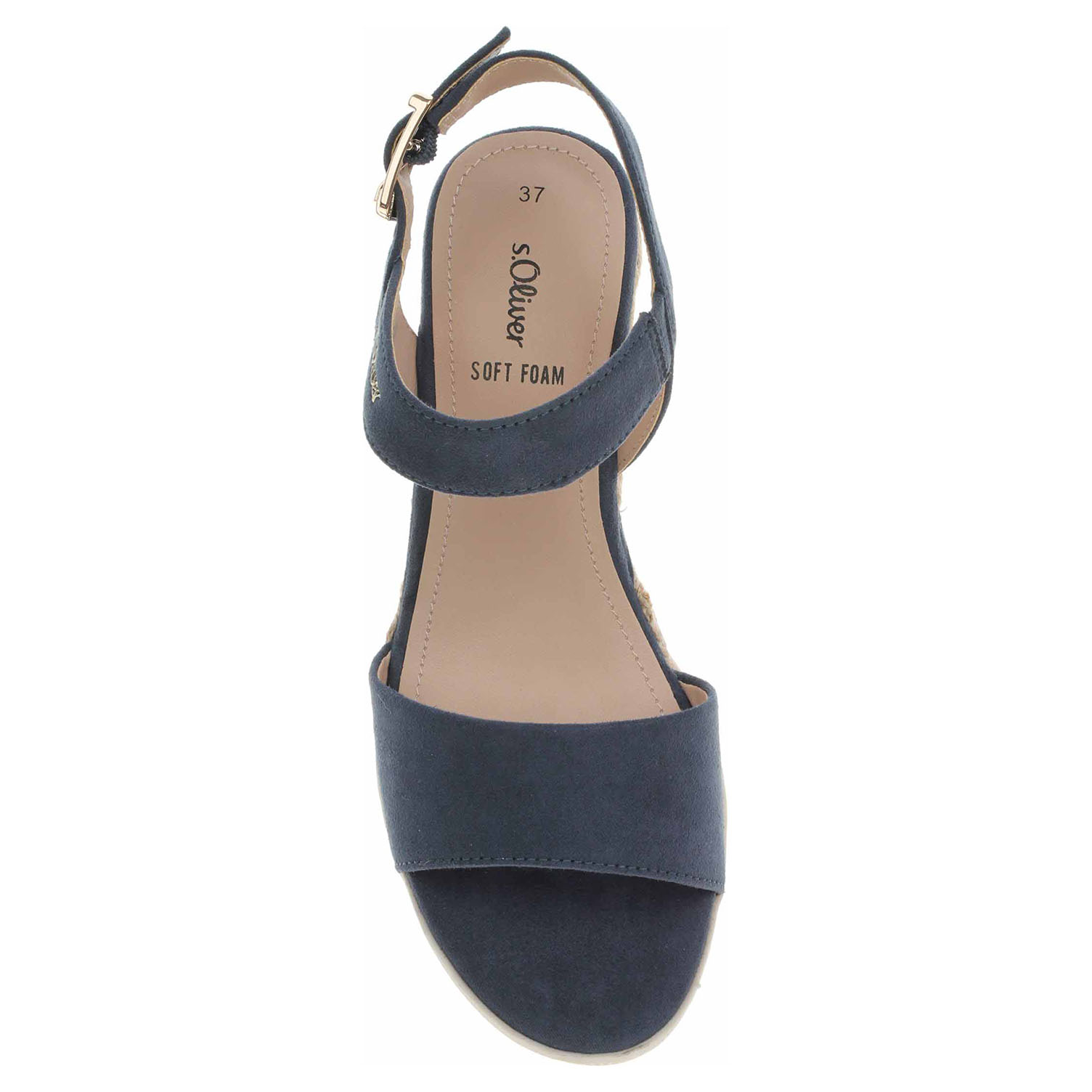 Boty s.Oliver - dámské sandály s textilním svrškem, s podšívkou ze syntetiky a se stélkou kombinovanou syntetika/textil. Obuv je vybavená vyměkčenou stélkou Soft Foam, která se přizpůsobuje vašemu chodidlu a zajišťuje optimální komfort při chůzi. Pásek přes kotník se zapíná na přezku. Klínek je vysoký 6,- cm a platforma je vysoká 1,5 cm.