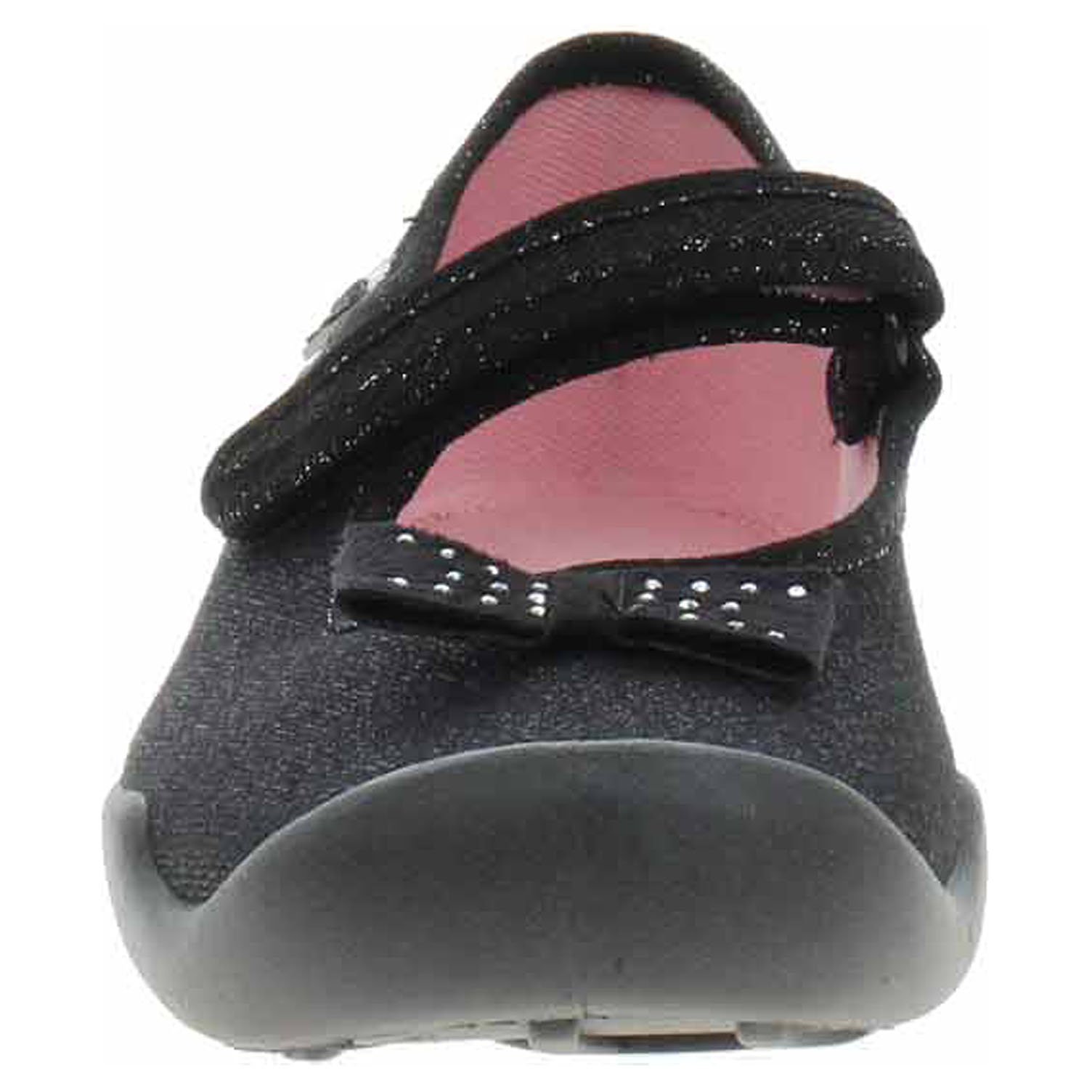 Boty Befado - dívčí domácí bačkory s textilním svrškem, podšívkou i stélkou. Obuv je vybavená vyměkčenou stélkou Soft-B systém a dýchající podešví. Pásek přes nárt se zapíná na suchý zip. Dětská obuv - je vzhledem ke způsobu užívání vystavena většímu mechanickému poškození - okopání. Mechanické poškození není důvodem k reklamaci.