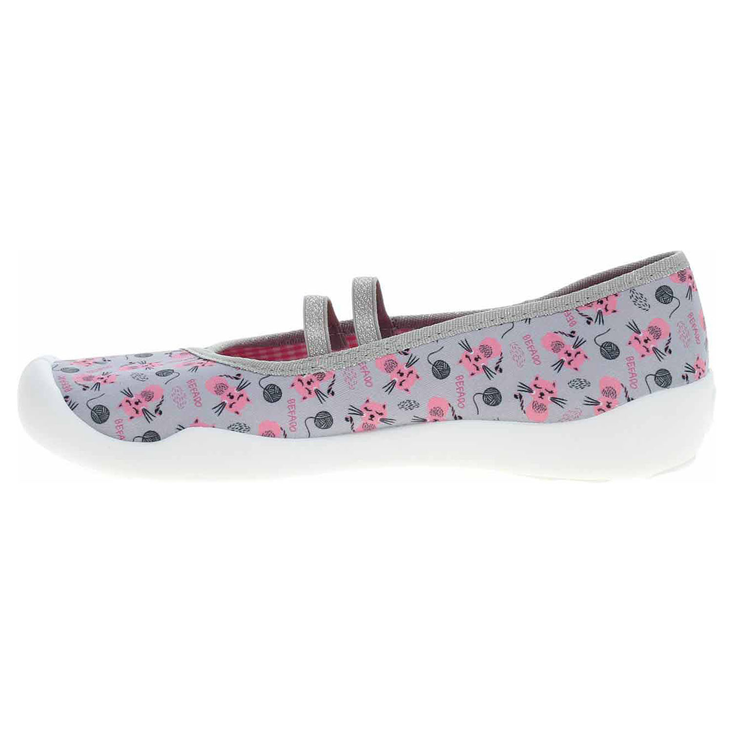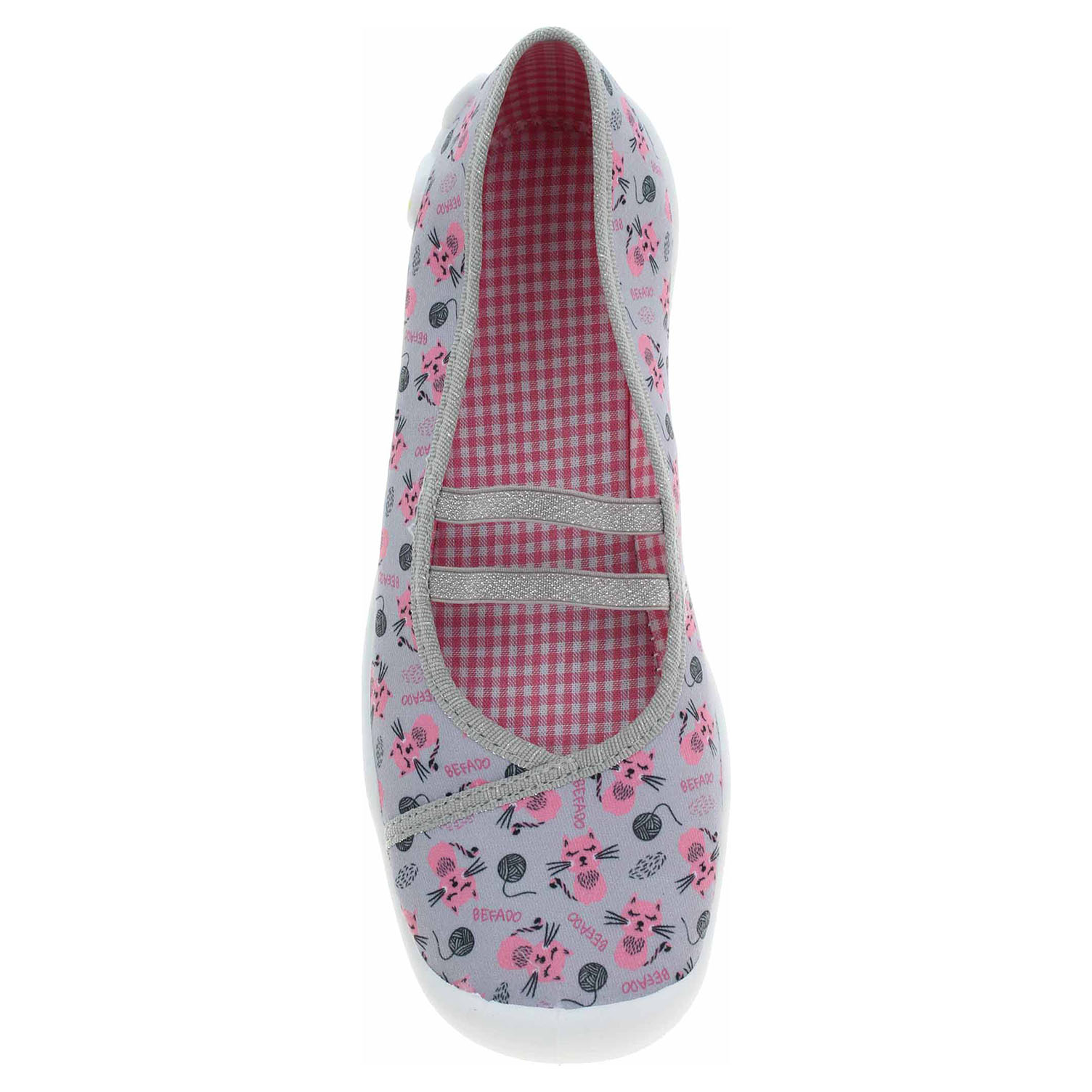 Boty Befado - dívčí domácí bačkory s textilním svrškem, podšívkou i stélkou. Obuv je vybavená vyměkčenou stélkou Soft-B systém a dýchající podešví. Gumičky přes nárt zajišťují pohodlné nazouvání a stabilitu nohy v obuvi. Dětská obuv - je vzhledem ke způsobu užívání vystavena většímu mechanickému poškození - okopání. Mechanické poškození není důvodem k reklamaci.