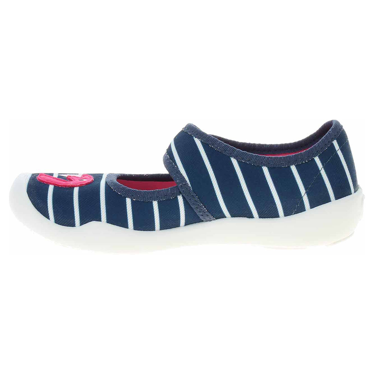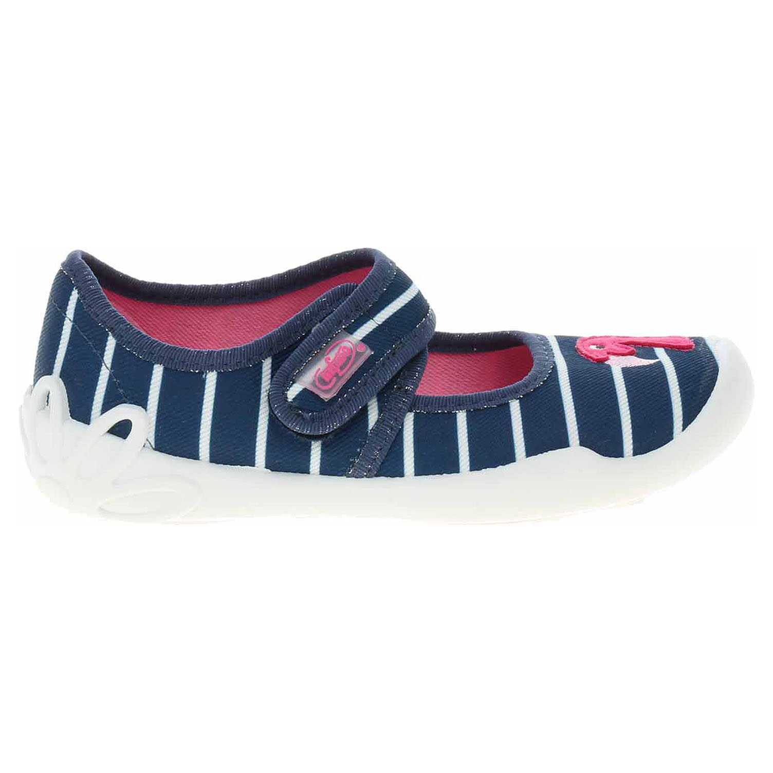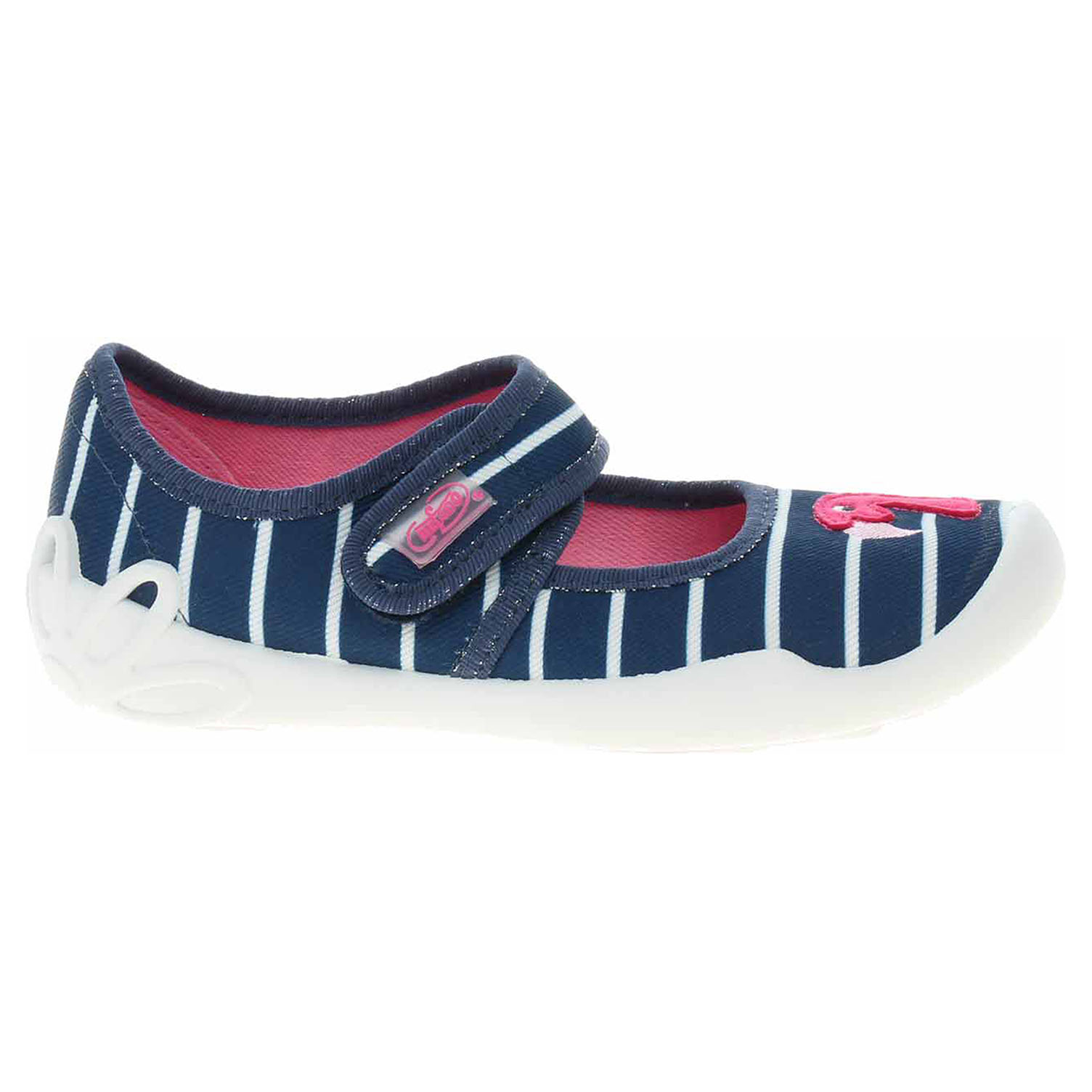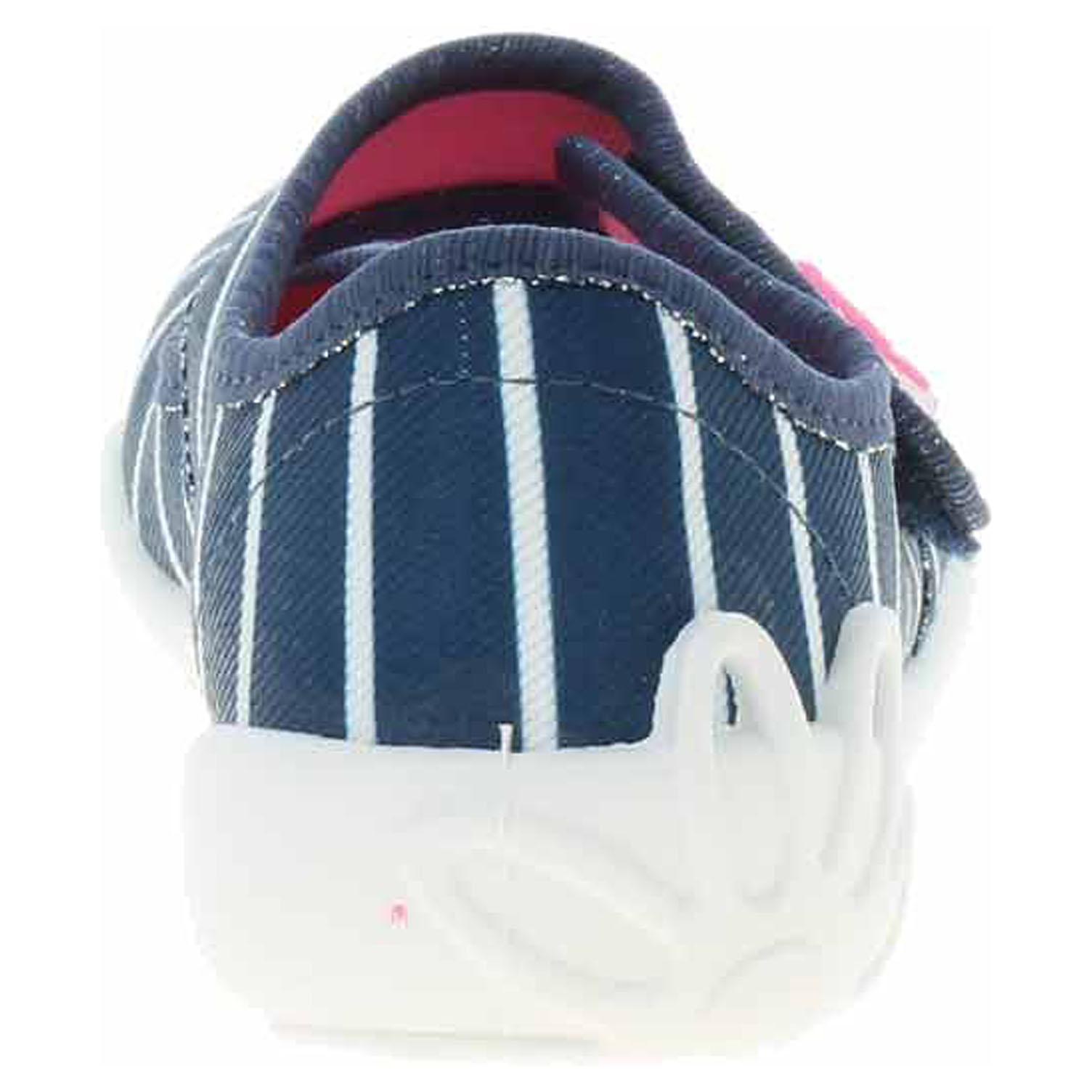 Boty Befado - dívčí domácí bačkory s textilním svrškem jsou vybavené vyměkčenou stélkou Soft-B system a dýchající podešví. Pásek přes nárt zajišťuje stabilitu nohy v obuvi a zapíná se na suchý zip. Dětská obuv - je vzhledem ke způsobu užívání vystavena většímu mechanickému poškození - okopání. Mechanické poškození není důvodem k reklamaci.