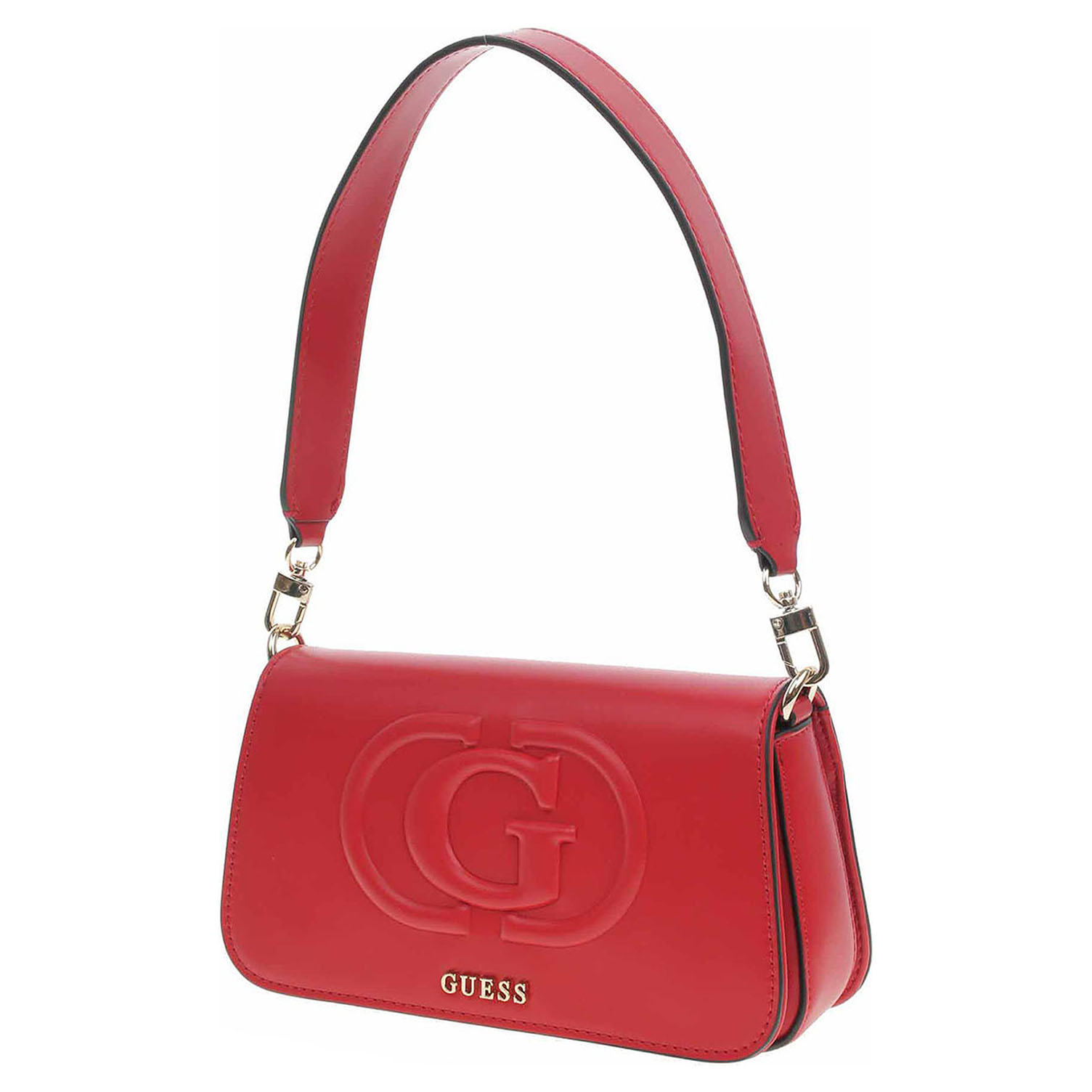 Guess - dámská klopnová kabelka ozdobená logem Maxi G na přední straně a kovový detailem loga je vyrobená ze 100% polyuretanu a podšívka je ze 100% polyesteru. Klopna se zapíná na dva magnety. Kabelku je možno nosit za kratší popruh v ruce a přes rameno nebo na delším regulovatelném popruhu přes rameno. Rozměry kabelky: 24 x 13 x 7 cm (rozměr A4 se do kabelky nevejde). Na zadní straně kabelky je kapsa se zipem. Karabinka, kroužky, zip i logo jsou z leštěného kovu zlaté barvy. Vnitřní výbava: 1x kapsa se zipem, 3x kapsička na platební karty a na vizitky. Součástí balení je praktický dustbag pro uložení kabelky.
