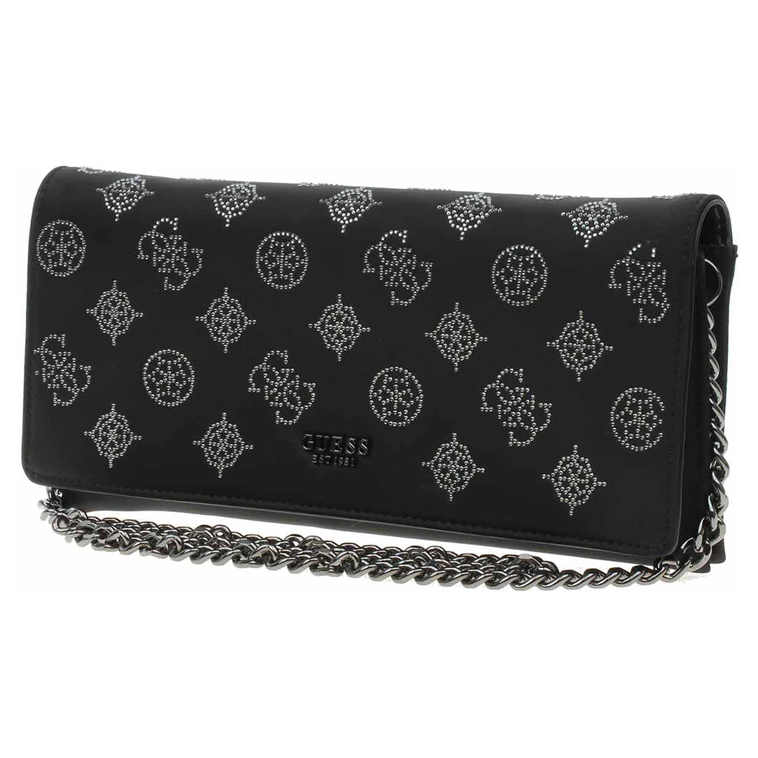 Guess Gilded Glamour Mini - dámská dvoukomorová společenská kabelka s klopnou pokrytou elegantními ozdobnými kamínky, která se zapíná na magnet, je vyrobená ze 100% polyesteru na vnější straně a podšívka je v kombinaci 80% polyester / 20% bavlna a pod klopnou 100% polyuretan. Kabelku je možno nosit v ruce, přes rameno nebo crossbody na řetízku s karabinkami (délka cca 100cm), který se dá odepnout. Rozměry: 27 x 13 x 3,5 cm. Vnitřní výbava: 1. komora se zapíná na zip a obsahuje 6 přihrádek na platební karty a vizitky, 2. komora je bez zapínání a obsahuje kapsu se zipem. Součástí balení je praktický dustbag pro uložení kabelky.
