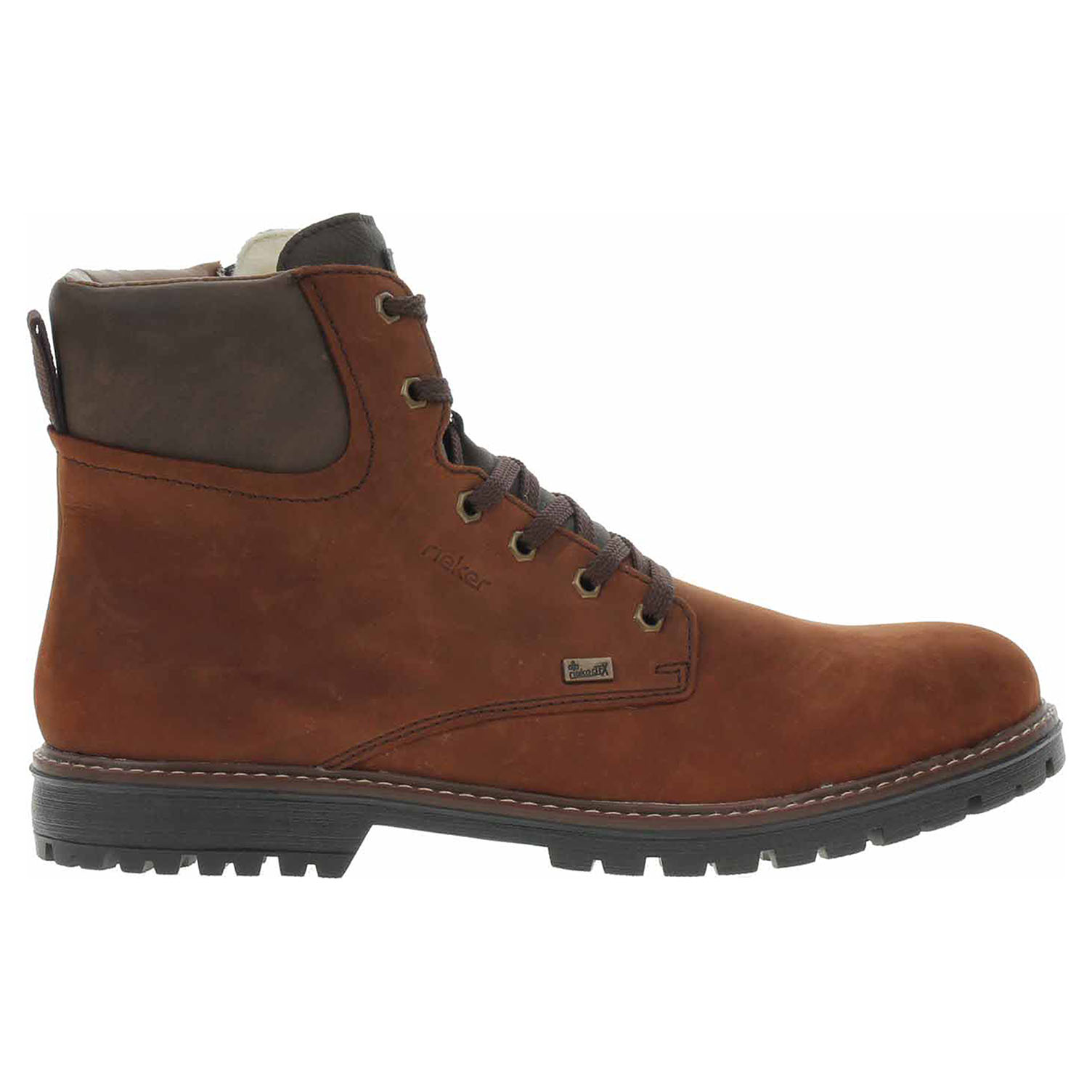 Boty Rieker - lepená pánská kotníková obuv se svrškem z usně a s lemem okolo kotníku, který je ze syntetiky, je vyteplená podšívkou ze střižní ovčí vlny a je vybavená vodoodpudivou membránou RiekerTex. Pohodlné nazouvání zajišťuje šněrování a zip na vnitřní straně. Podpatek je vysoký 3,- cm. Podešev je flexibilní a díky systému Antistress skvěle tlumí nárazy a otřesy. Lepená obuv - pevnost lepeného spoje může být negativně ovlivněna promáčením nebo propocením, event. opakovaným používáním nedostatečně vysušené obuvi. Při neopatrné chůzi může dojít k mechanickému uvolnění lepeného spoje - ukopnutí.
