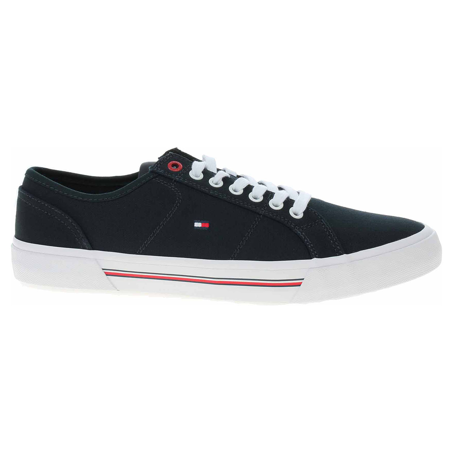 Boty Tommy Hilfiger - módní pánská obuv se šněrováním má textilní svršek (100% bavlna) a podšívku i stélku z polyesteru. Obuv je vybavená vyměkčenou stélkou, kterou je možné vyndat za účelem provětrání a omytí. Klínek je vysoký 2,- cm. Módní obuv - je určena pro krátkodobé nošení v nenáročných podmínkách. Prvořadá je módnost nikoliv životnost. Obuv není vhodná pro každodenní používání.