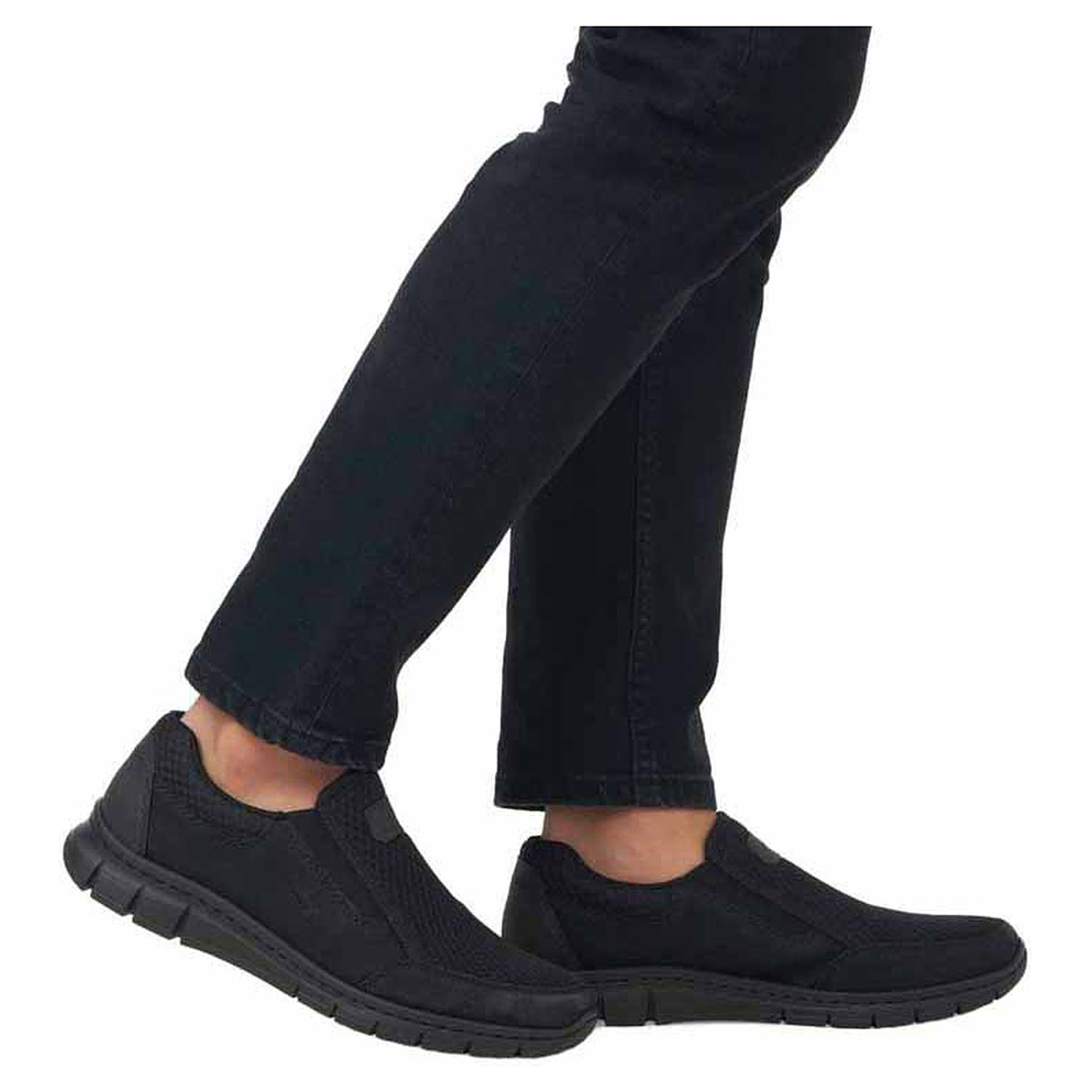 Boty Rieker - flexiblové pánské mokasiny se svrškem kombinovaným syntetika/textil a s textilní podšívkou i stélkou jsou na vnitřní i vnější straně nártu vybavené vsazenými gumičkami, které zajišťují pohodlné nazouvání. Ultralehká podešev Rieker-Lite je flexibilní a díky systému Antistress skvěle tlumí nárazy a otřesy. Klínek je vysoký 3,6 cm. Flexiblová obuv - prošívaná podešev, obuv používejte v suchém prostředí. Při zvýšené vlhkosti může dojít k promáčení obuvi. Obuv pravidelně impregnujte nebo krémujte, zvláště pak prošívaný okraj.