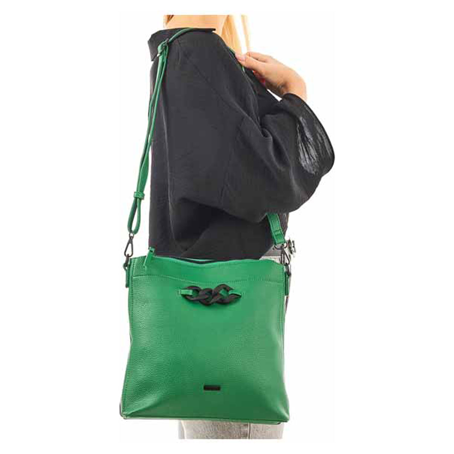 Rieker - dámská kabelka ze syntetiky (100% polyuretan) a s textilní podšívkou (100% polyester) se zapínáním na zip a má rozměry - 27 x 27 x 7 cm. Kabelku s ozdobným řetízkem na přední straně je možno nosit na regulovatelném popruhu, který se dá odepnout, přes rameno nebo crossbody. Vnitřní výbava: 1x kapsa se zipem, 2x kapsička na drobnosti bez zapínání.