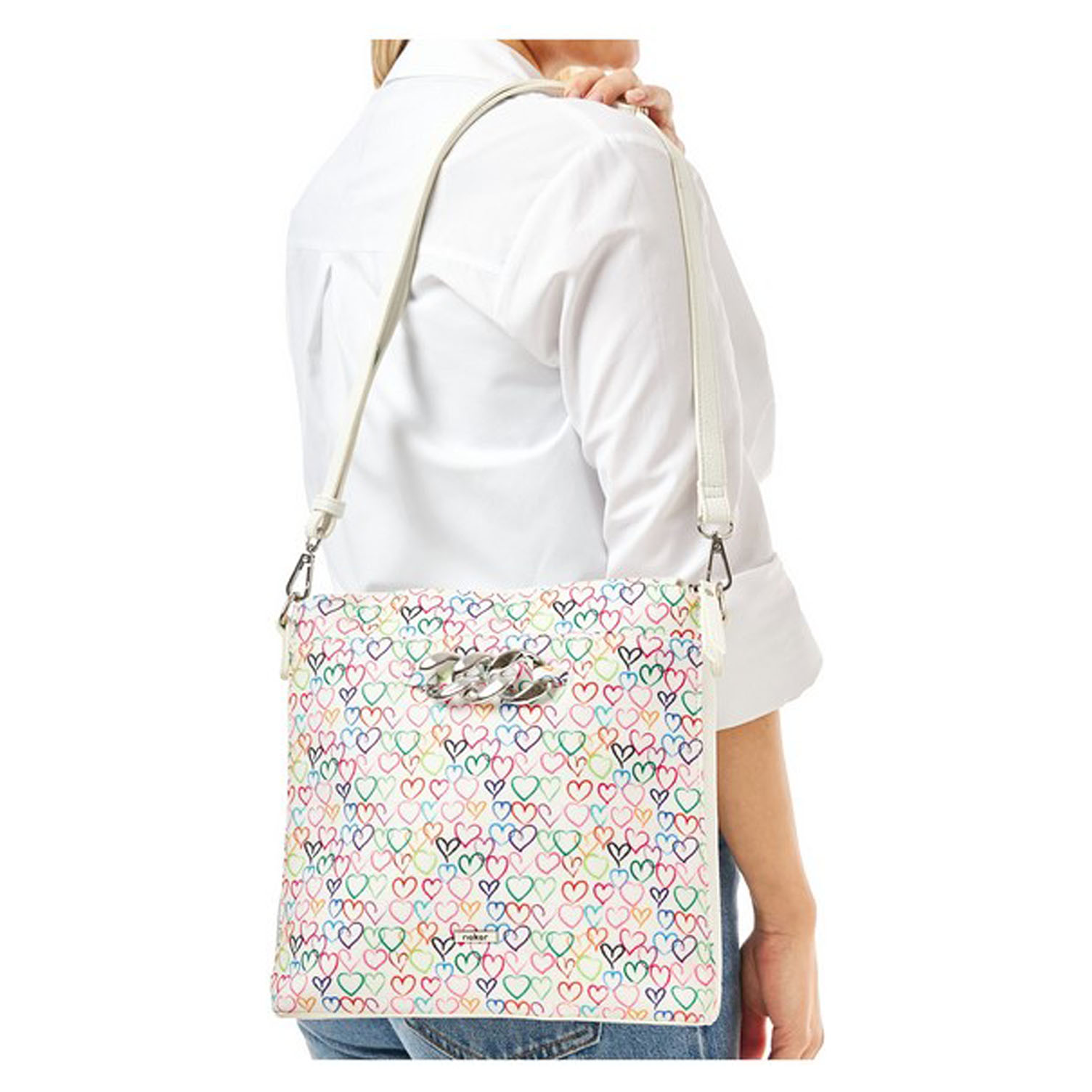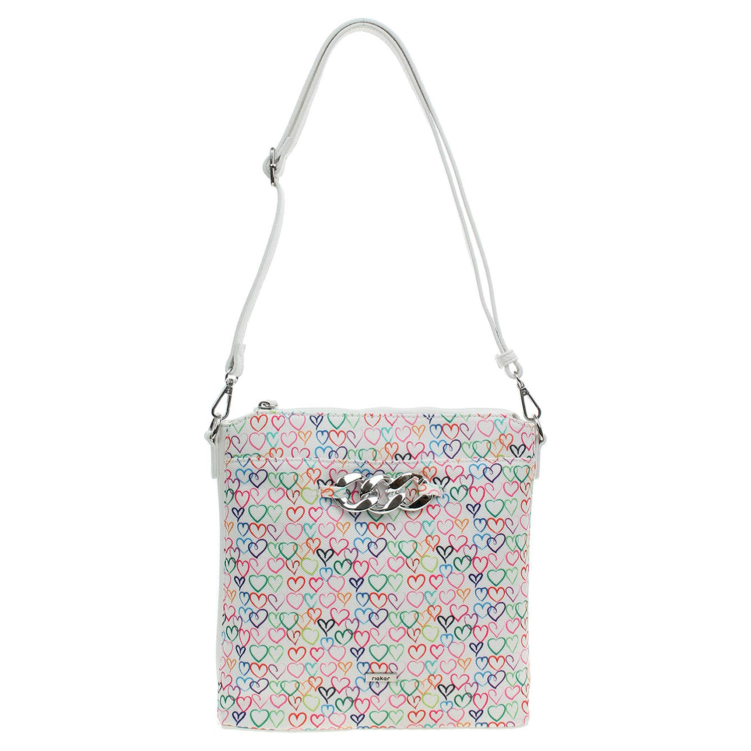 Rieker - dámská kabelka ze syntetiky (100% polyuretan) a s textilní podšívkou (100% polyester) se zapínáním na zip a má rozměry - 27 x 27 x 7 cm. Kabelku v barevné kombinaci bílá/multi s ozdobným řetízkem na přední straně je možno nosit na regulovatelném popruhu, který se dá odepnout, přes rameno nebo crossbody. Vnitřní výbava: 1x kapsa se zipem, 2x kapsička na drobnosti bez zapínání.