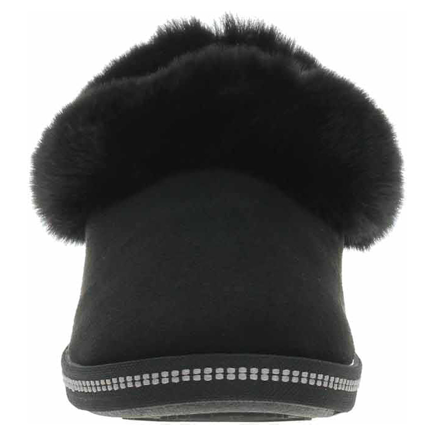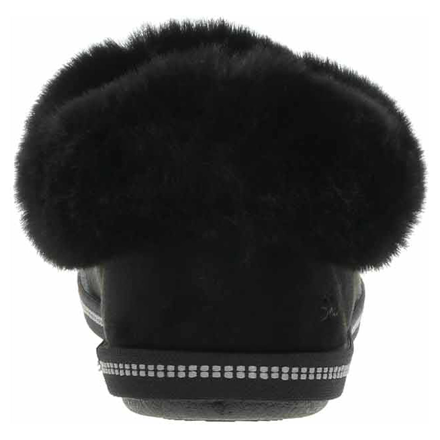 Skechers Cozy Campfire - Winter Nights - dámské bačkory s textilním svrškem s efektem semiše a s límcem a podšívkou z umělé kožešiny jsou vybavené pohodlnou polstrovanou stélkou z paměťové pěny Skechers Memory Foam™. Flexibilní trakční podrážka má klínek vysoký 1,9 cm. Obuv je 100% VEGAN = při výrobě obuvi nebyly použity žádné materiály ze zvířat.