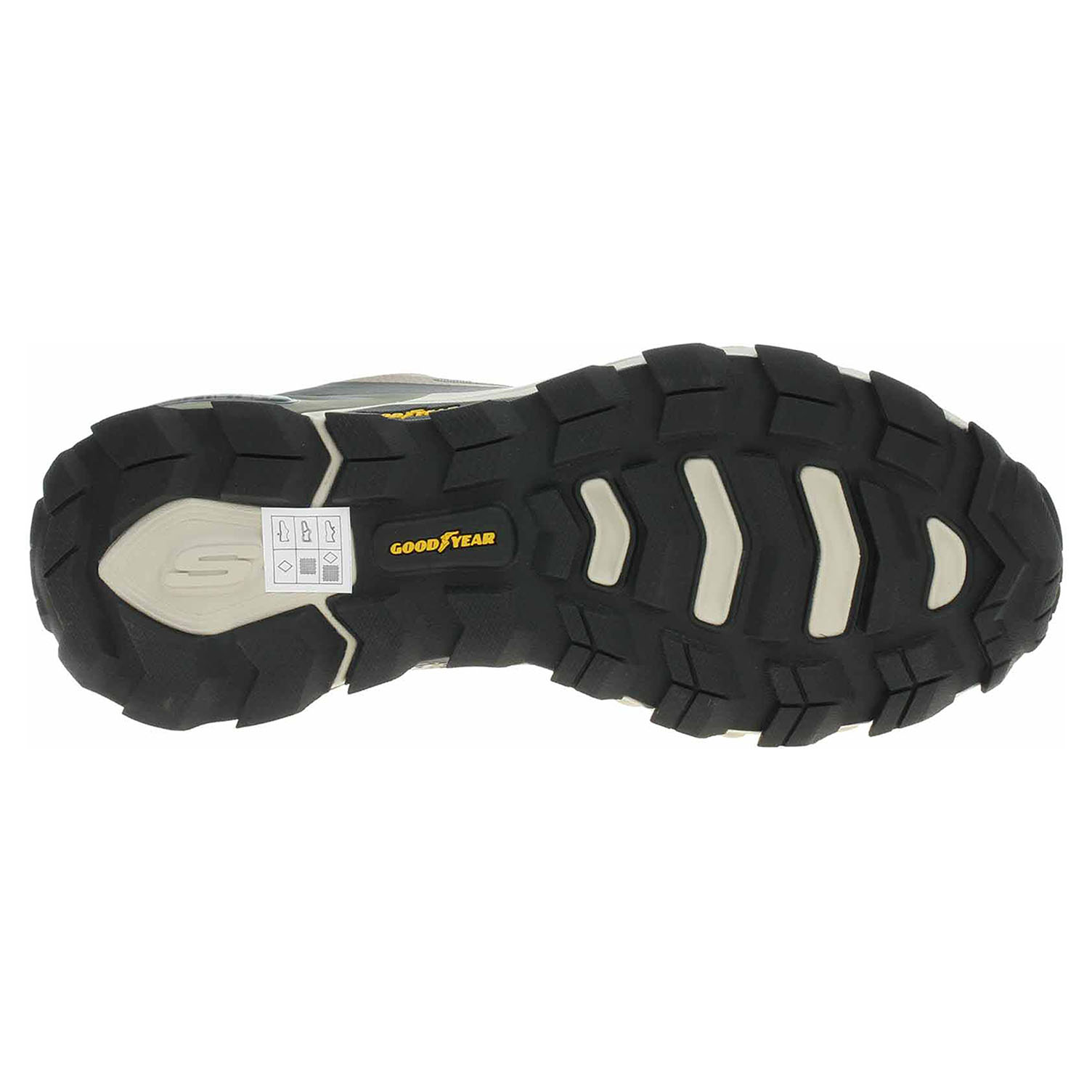Boty Skechers Max Protect - Fast Track - rekreační pánská outdoorová trailová obuv se šněrováním má nepromokavý svršek Waterproof (nepromokavý design utěsněný ve švech) kombinovaný syntetika/textil a je vybavená paměťovou stélkou Air-Cooled Memory Foam®. Vzduchem chlazená paměťová pěna zajištuje chůzi jak na polštáři, ale noha se nepřehřívá a přirozeně se ochlazuje. Podešev s odolnou gumovou podrážkou Goodyear® má klínek vysoký 4,- cm a poskytuje lepší přilnavost, stabilitu a odolnost. Obuv je 100% VEGAN = při výrobě obuvi nebyly použity žádné materiály ze zvířat. Rekreační obuv - je vhodná pro rekreačně-vycházkové příležitosti. Není určená k provozování sportovních aktivit.Obuv není vhodná pro každodenní používání.