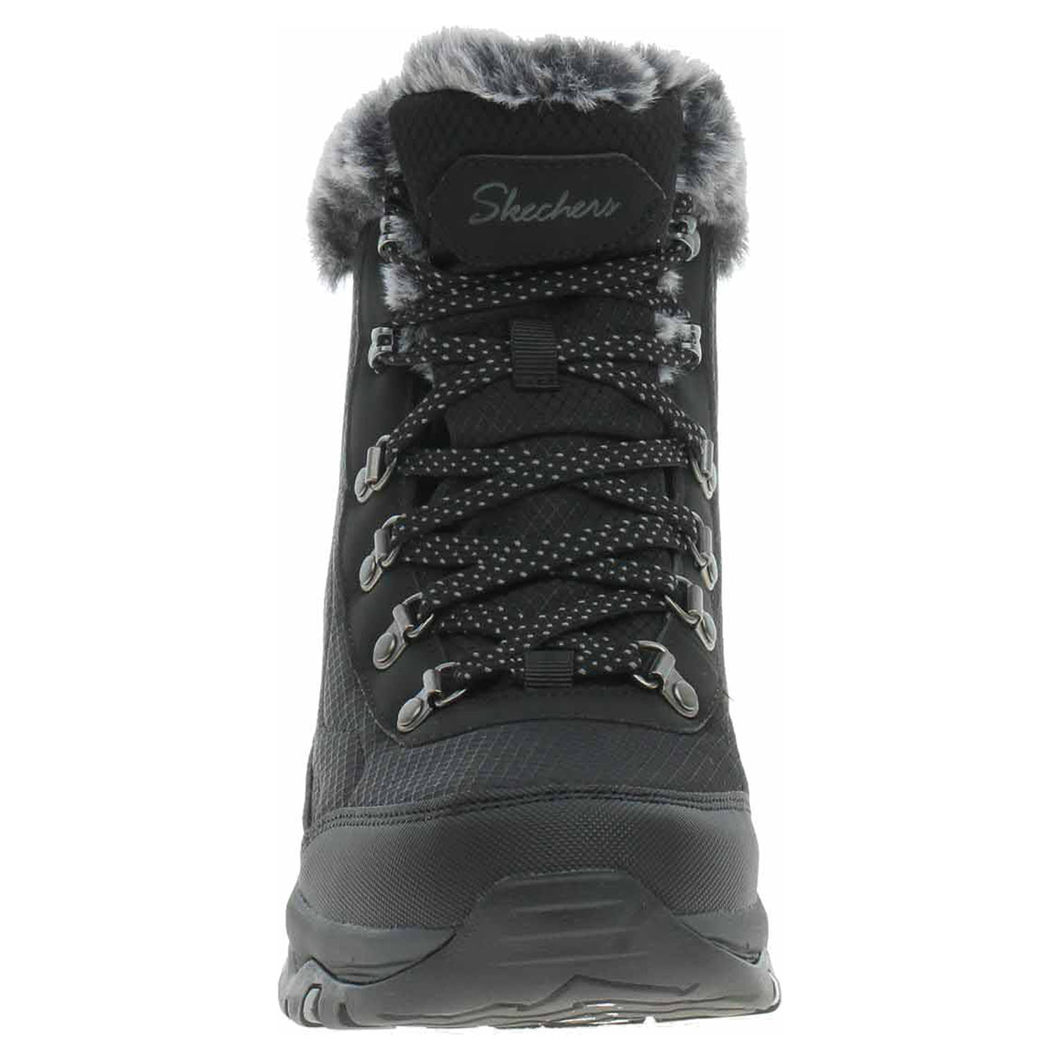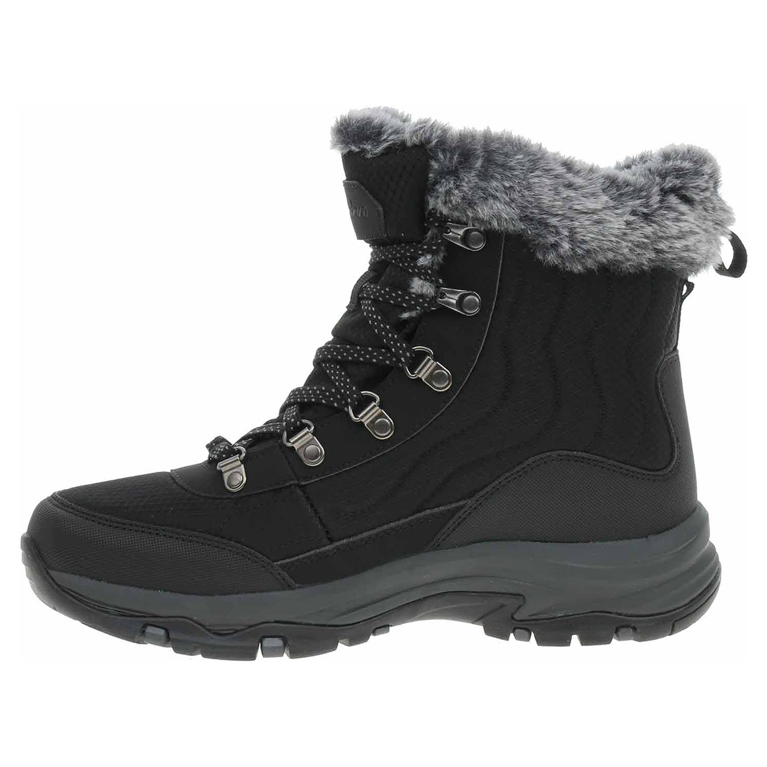 Skechers Relaxed Fit: Trego - Stormie - lepená dámská obuv se svrškem kombinovaným syntetika/textil a s textilním lemem z umělé kožešiny jsou vybavené vodoodpudivou úpravou svršku Waterproof (nepromokavá konstrukce utěsněná ve švech) a prodyšnou, vzduchem chlazenou stélkou Skechers Air-Cooled Memory Foam™. Obuv se šněrováním je vyteplená textilní podšívkou z umělé kožešiny. Pružná stabilní podrážka z protiskluzového materiálu do mokrého i suchého terénu má klínek vysoký 3,2 cm. Lepená obuv - pevnost lepeného spoje může být negativně ovlivněna promáčením nebo propocením, event. opakovaným používáním nedostatečně vysušené obuvi. Při neopatrné chůzi může dojít k mechanickému uvolnění lepeného spoje - ukopnutí.