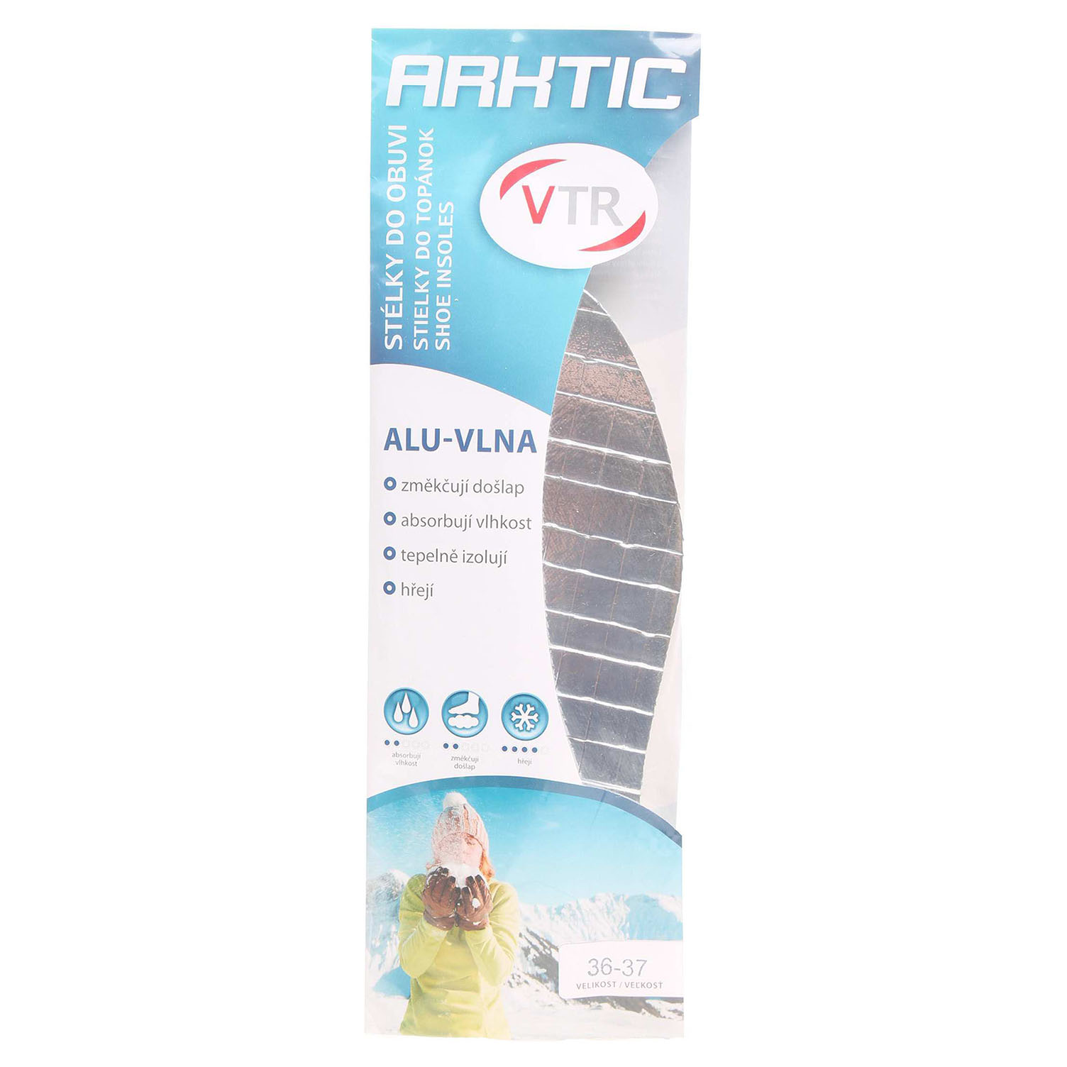 Stélky Alu - Vlna protiskluzové jsou vyrobeny z kvalitního šlehaného latexu (latexové pěny), který má výbornou savost a ve spodní části je doplněn o hliníkovou folii, která tepelně izoluje a drží vložku pevně na svém místě. Povrch stélky tvoří prošitá přírodní vlněná tkanina, která udržuje nohy v teple a suchu. Stélky jsou vhodné především pro zimní období. Latex zároveň změkčuje došlap a tlumí otřesy vznikající při chůzi. Stélky doporučujeme ve špici zastřihnout dle přesného tvaru obuvi.