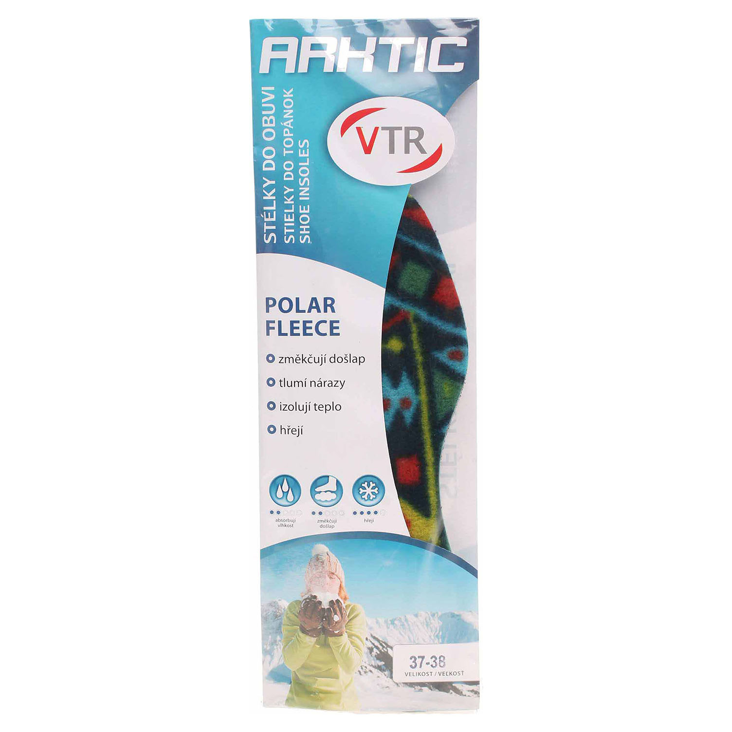 VTR Polar Fleece - vložky jsou vyrobené z kvalitního fleecového materiálu, který výborně hřeje a udržuje nohy v teple. Střední vrstva je z latexové pěny, která změkčuje došlap, tlumí otřesy při chůzi a pohlcuje vlhkost. Spodní vrstva z profilovaného šlehaného latexu napomáhá správné cirkulaci vzduchu a zabraňuje pohybu stélky v obuvi. Vložky jsou zvláště vhodné pro chladné období. Ve špici je možné je zastřihnout. Vhodné pro jakýkoliv druh obuvi.