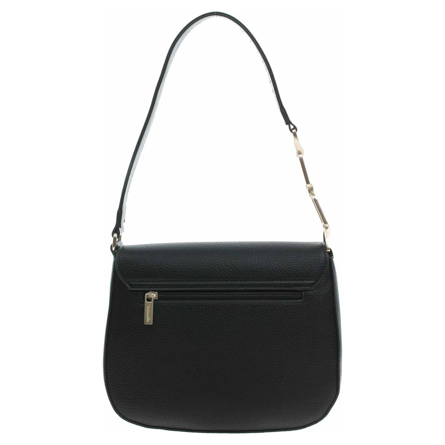 Tamaris - dámská klopnová kabelka se zapínáním na magnet má svršek z polyuretanu a podšívku z polyesteru. Komora pod klopnou se zapíná na zip. Na zadní straně je kapsa se zipem. Kabelku je možno nosit v ruce nebo přes rameno za kratší popruh (výška 25 cm) nebo na regulovatelném popruhu s karabinkami, který se dá odepnout. Rozměry: 26 x 7 x 22 cm. Objem: 4 l. Karabinky, přezky, zip i logo jsou z leštěného kovu zlaté barvy. Vnitřní výbava: 1x kapsa se zipem a 1x kapsa bez zapínání.